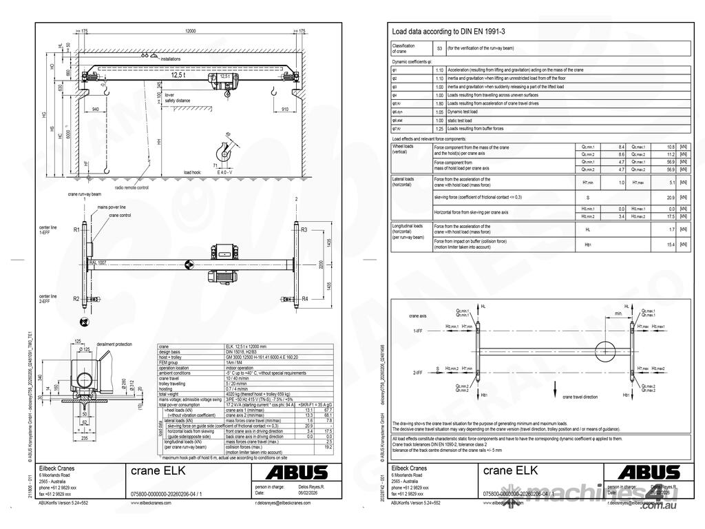 In this ad we provide general specifications for a 12.5t x 12m single girder overhead travelling crane equipped with the GM3000 model hoist. For more information please contact Ron.