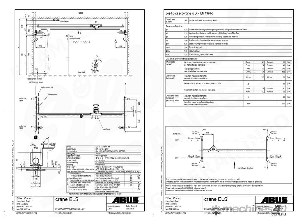 In this ad we provide general specifications for a 5t x 12m single girder overhead travelling crane equipped with the GM1000 model hoist. For more information please contact Ron.
