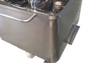 Our PACIFIC 200L stainless steel dump bins with drain are robust and manufactured from heavy gauge polished 304 stainless steel. For use in food production industries such as meat, diary, small goods, dry goods and many more uses. Use this bin anywhere requiring a food safe industry standard 200L bin, with easy to move heavy duty nylon wheels and compatible with all standard bin lifters. A drain with ball valve allows for easy draining of the bin.