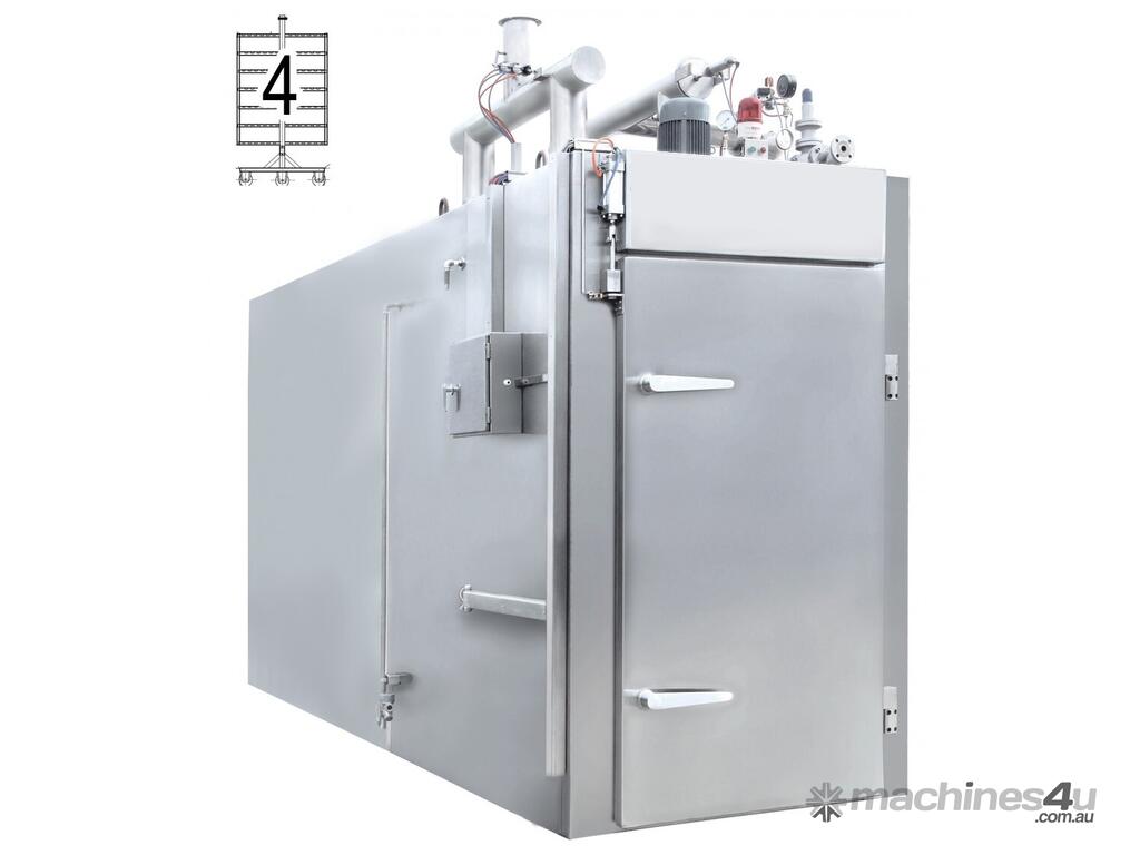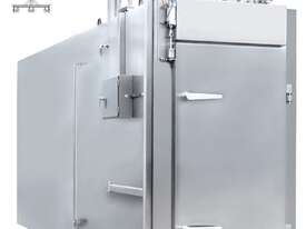 The PACIFIC 2-4 trolley smokehouse is an advanced multi-function smokehouse that is capable of cooking, baking, smoking, cooling and cleaning all in the one machine. It features fully digital controls via the easy to use digital HMI interface and features the capacity to smoke or cook up to 4 smoke trolleys at a single time with both in and out doors located at each end of the smokehouse for quick and efficient product through put, making it perfect for production with separated fresh and cooked areas.