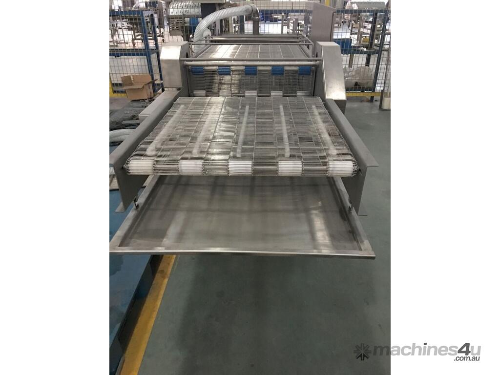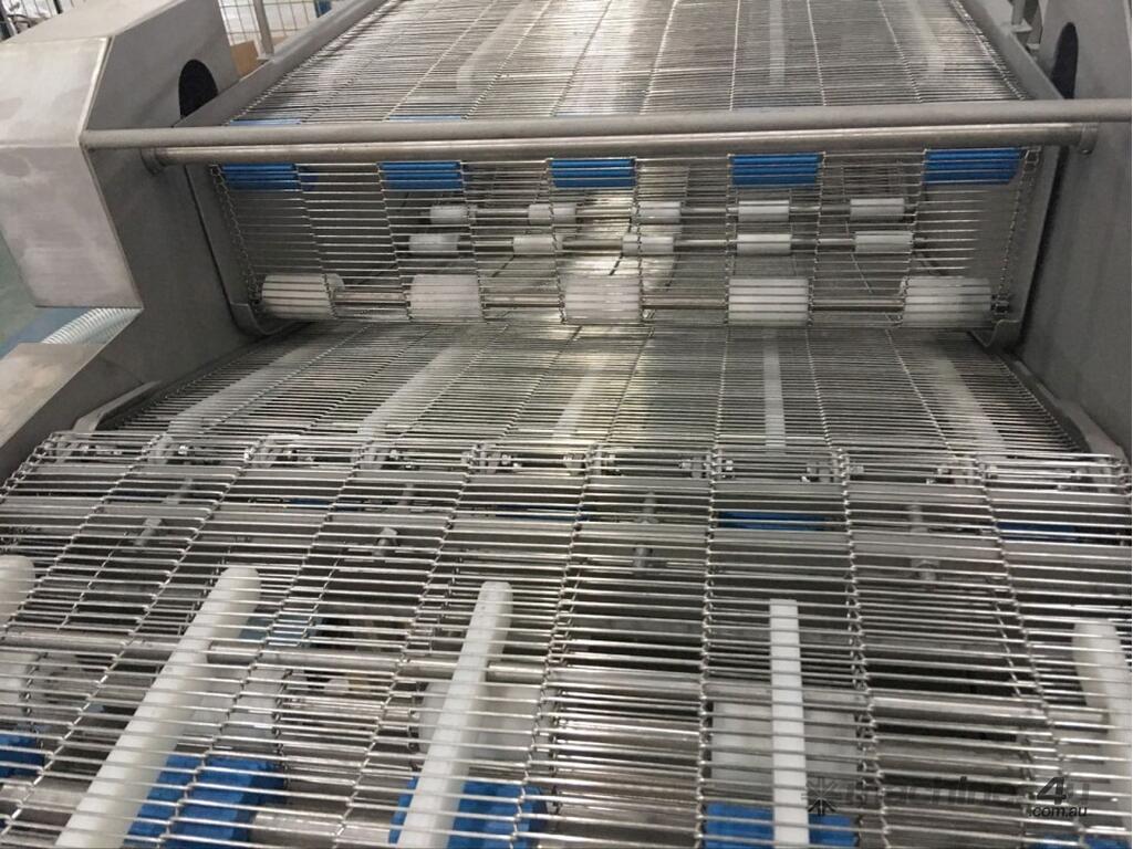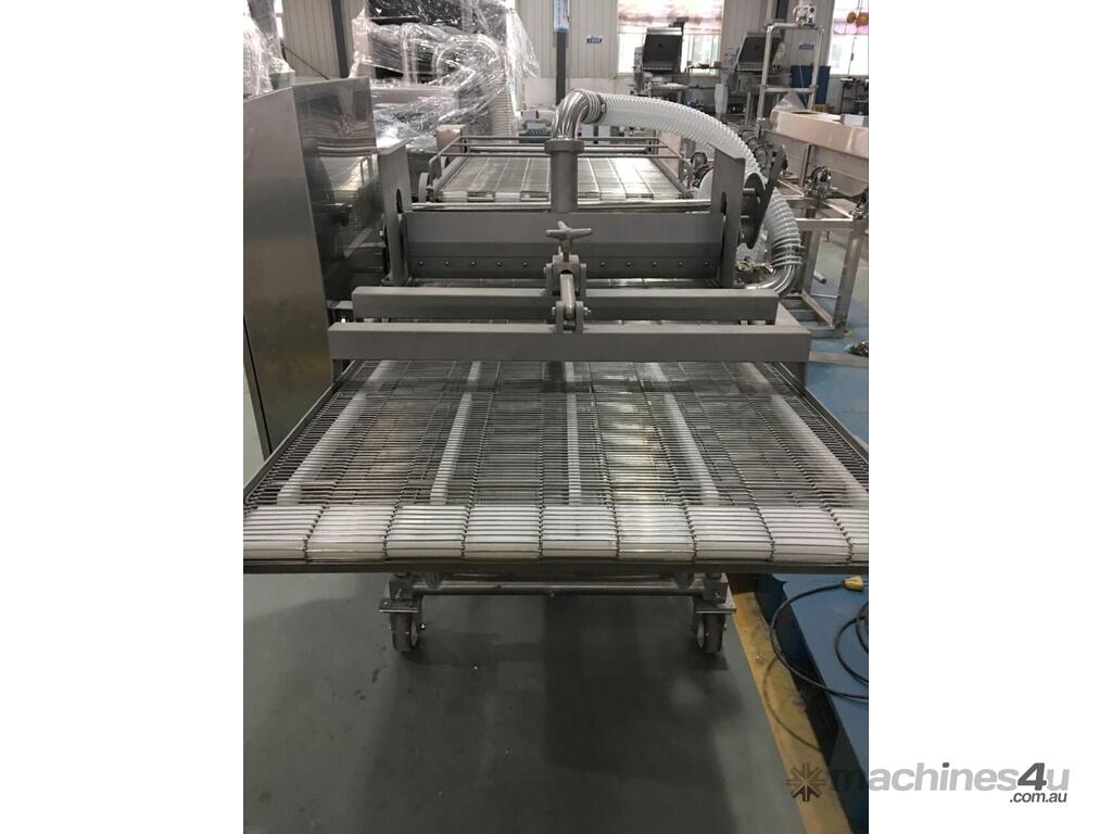 The PACIFIC 600mm tempura battering machines features a top and bottom belt which feeds and dips the product down into the batter mixture. This process is best suited for irregular shaped products which helps to ensure the product is completed coated. The product then passes through an air blade which removes any excess batter from the product which limits the amount of wastage introduced into the coating process.
