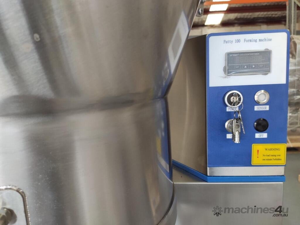 Production capacity of up to 2100pcs per hour.Lays wax paper under burger paty to prevent patties sticking when stacked or packaged.Outfeed conveyor to feed into a batterer, preduster, fryer, cooker, freezer or similarpact design on frames and wheels allow for to easier position and move the machineOptional: custom moulds available for the machine, in a range of different 2D shapes and sizes (ie chicken nuggets, circles, squares, triangles, hearts, etc)