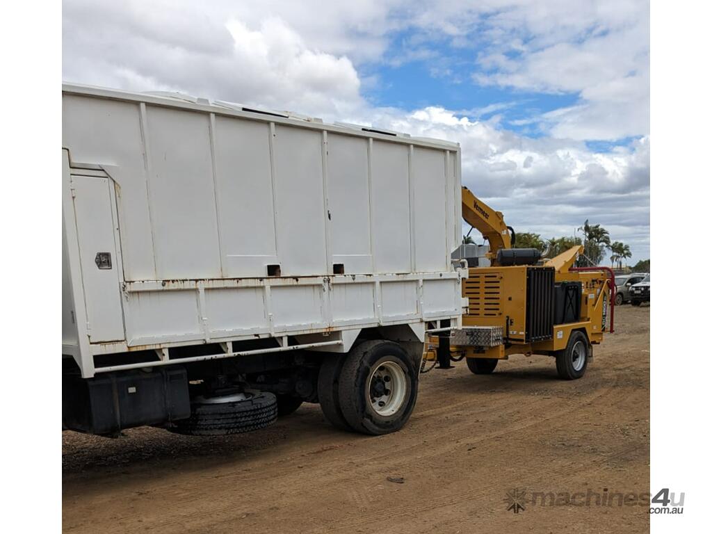The chipper tipper is designed for heavy-duty tasks, with a robust chassis and ample load space to handle wood chipping and transport requirements. The Vermeer BC1800 Woodchipper Trailer, renowned for its efficiency, seamlessly complements the truck, making it a formidable team for forestry and landscaping professionals. With this pairing, you're guaranteed productivity, reliability, and the capacity to tackle demanding projects with ease