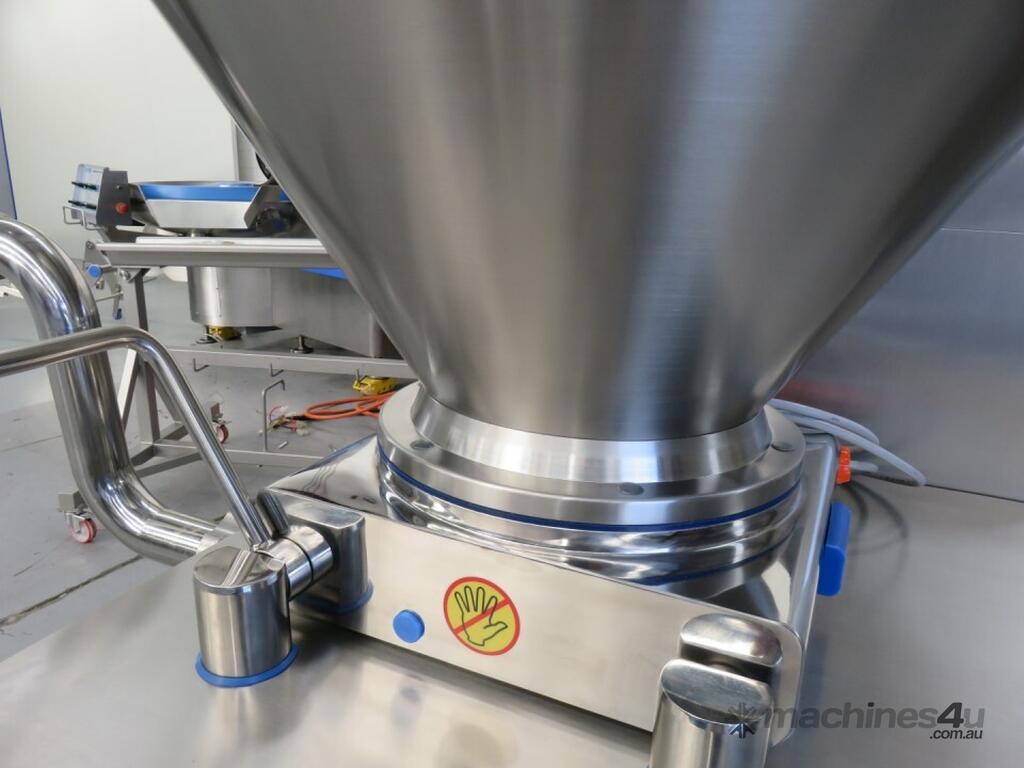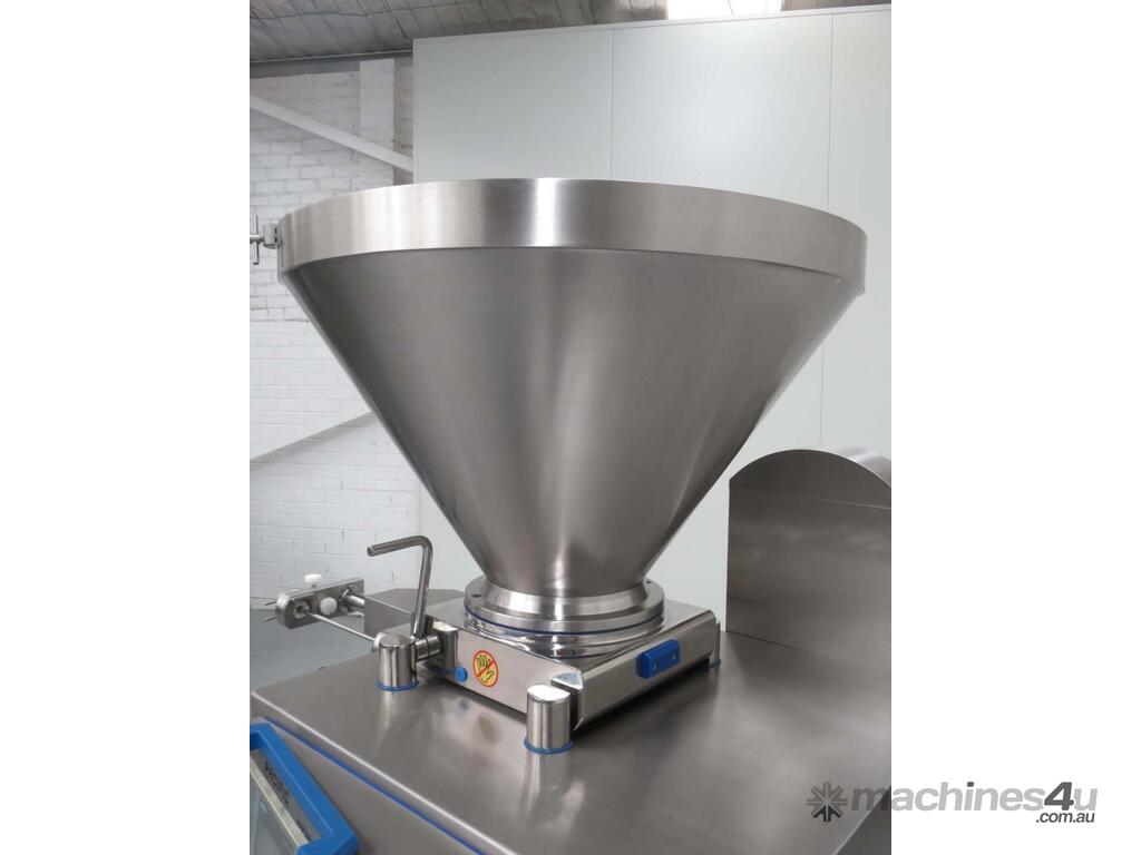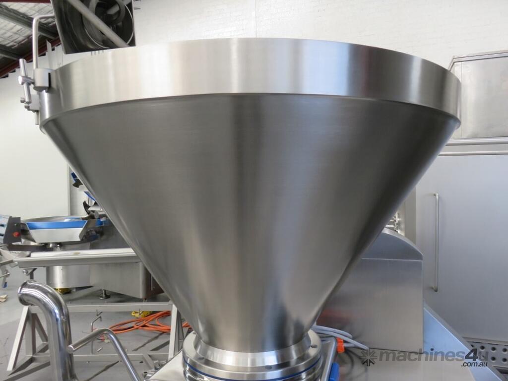 Filling process performed under vacuum state. Avoids fat oxidation and proteolysis, reducing bacteria in product. This helps to provide a longer shelf life of the product along with brighter color and taste.Integrated 200L bin lifterPortion size from 10g-99999.9g220L hopperBusch vacuum pumpStainless steel constructionCompatible with sausage linker (optional)Compatible with high speed sausage twister (optional)
