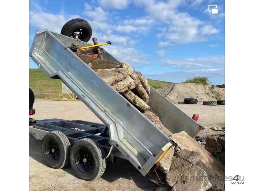 NEW 3.5T 10X5 GAL HYDRAULIC TIPPING TRAILER 12 MONTHS REGO ALLOY LOADING RAMPS
