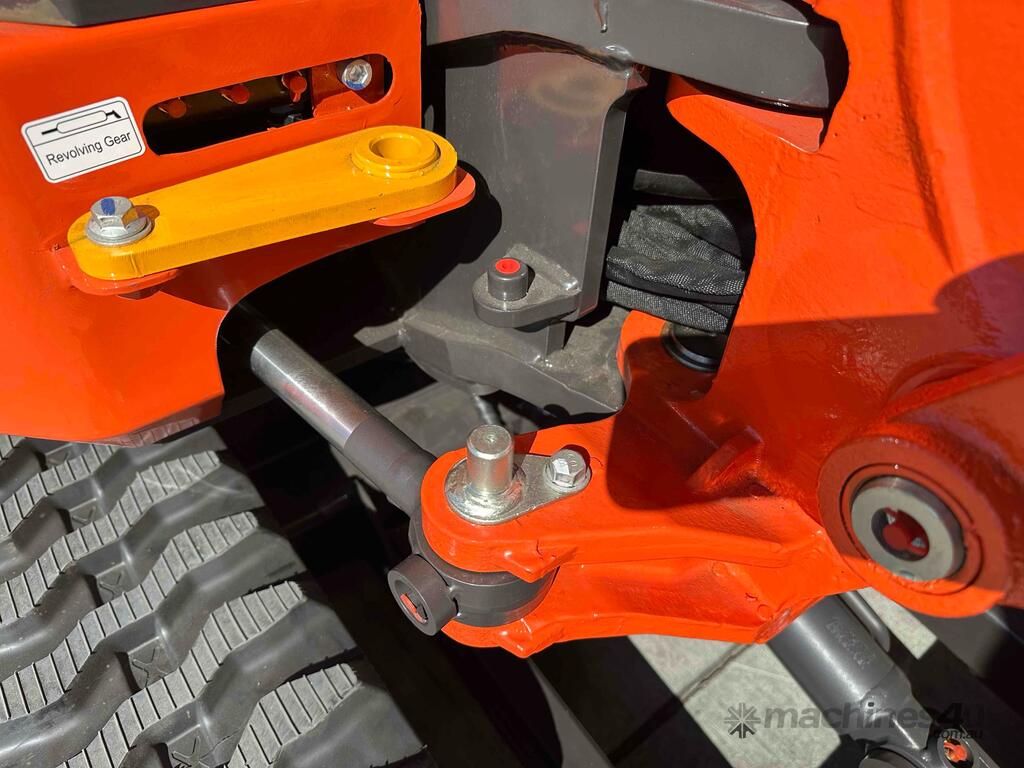Its ergonomically designed seat mounted pilot control joysticks enhance comfort and precision, while the high-quality hydraulic system, including a constant variable piston pump and auxiliary output, allows for smooth operation and compatibility with various attachments such as post hole diggers, rock breakers and tilting mud buckets .
