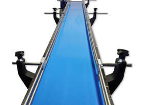 The 316 stainless steel frame is mounted on top of castors/wheels to allow for unparalleled manoeuvrability, furthermore this machine features levelling jacks on rubber feet to allow traction and height adjustment of the entire conveyor to suit any production line.