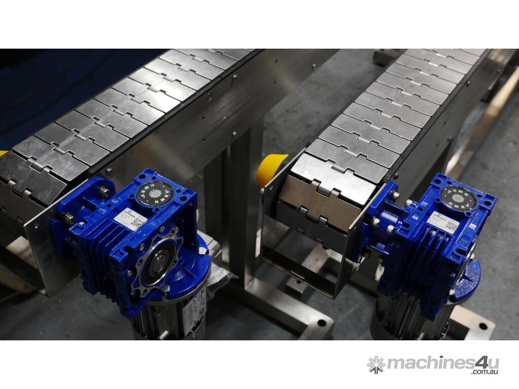 Our PSC-6-3.6 Slat Conveyor measures 3600mm in length and is designed for handling all types of containers regardless of shape or material; as long as they can stand of their own accord. Containers are normally fed to the conveyor to assist with other production line systems such as filling, capping, labelling, marking and sealing.