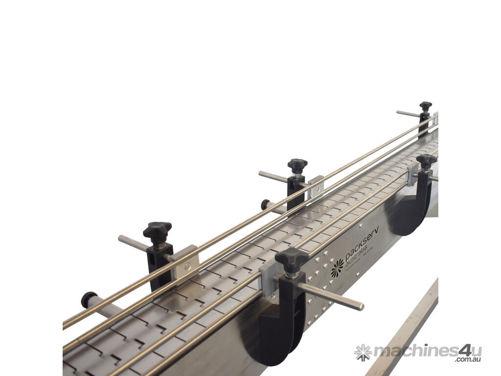 The Packserv conveyor systems are designed to be modular allowing for use with our entire suite of equipment as well as other manufacturers. All of our gating and sensor systems are designed to be utilised with the guide rails used by this conveyor. Furthermore, all our filling and capping machines can mount  to the conveyor to ensure consistency of application.