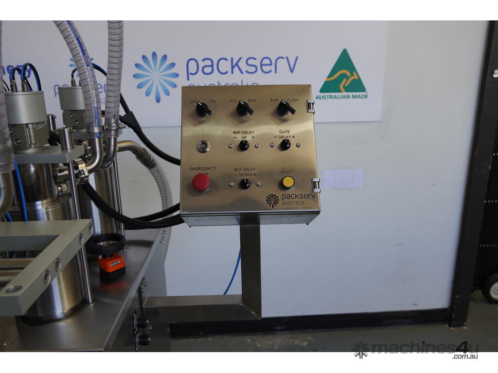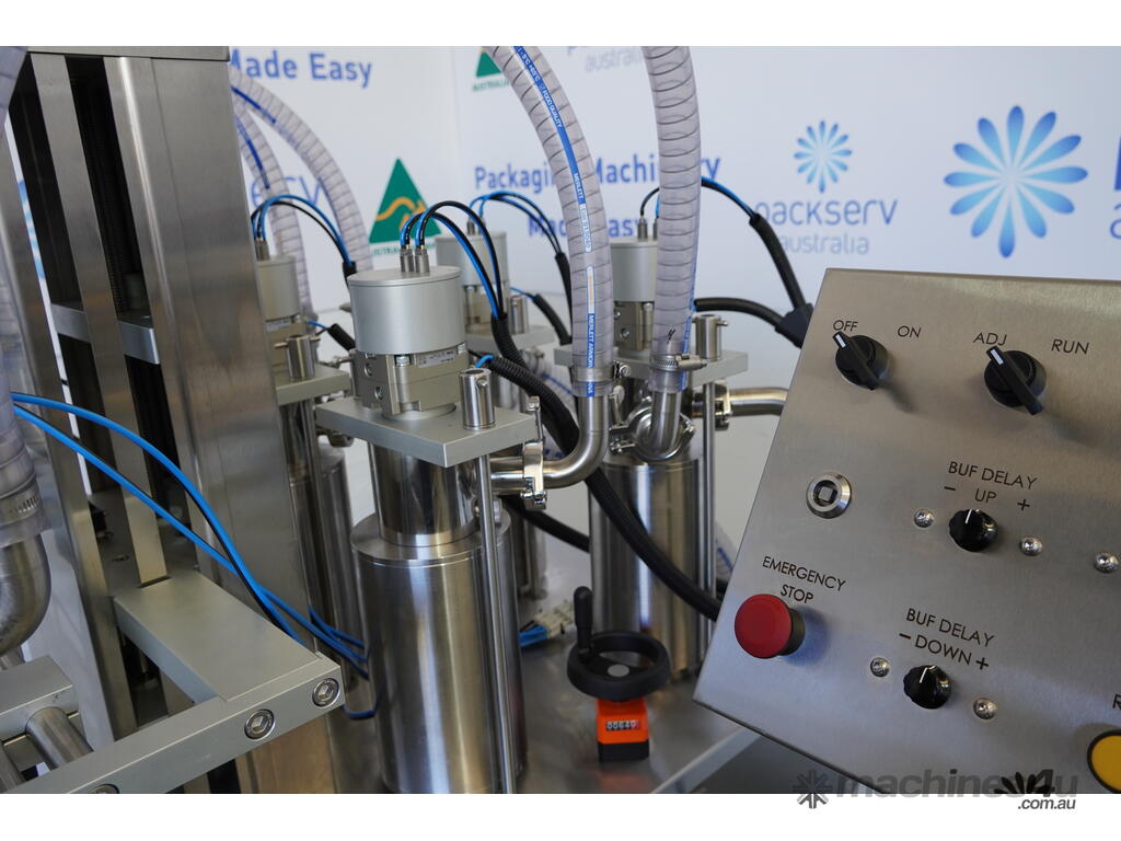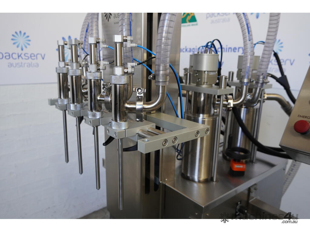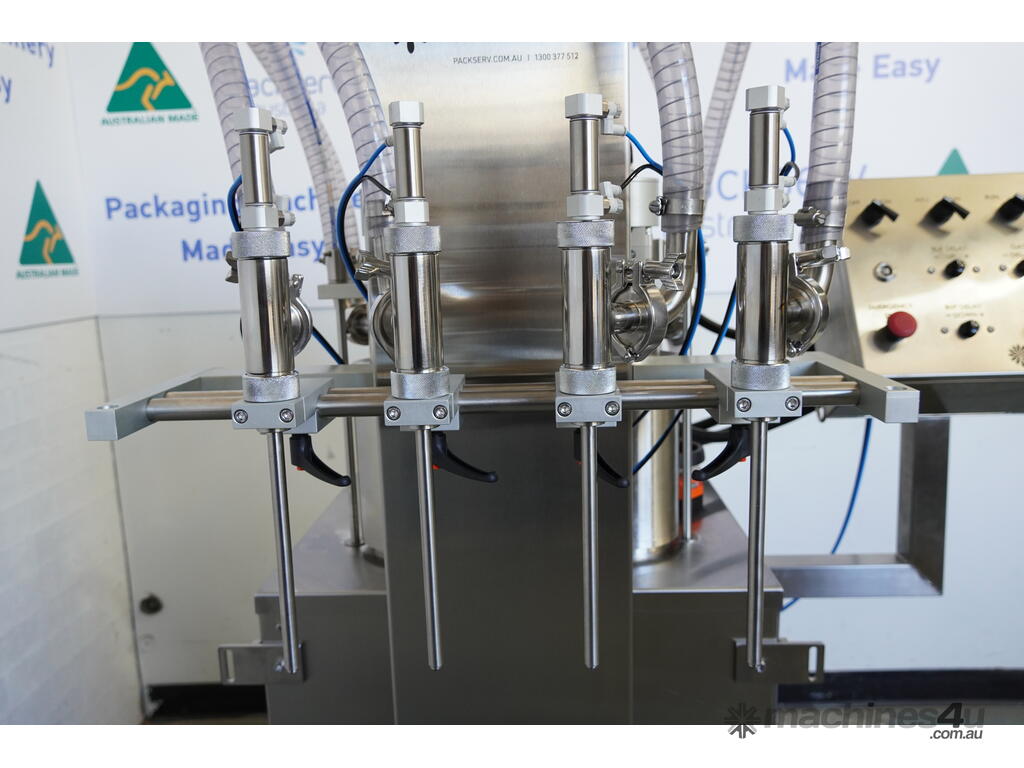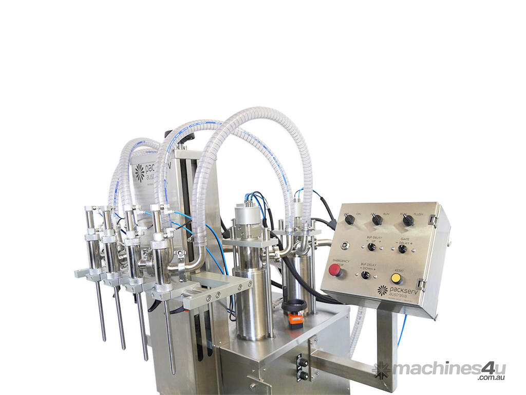 The Packserv PFM-4C Four Head Auto Filler is an automatic liquid and lotion filling machine that is both user friendly and versatile featuring 4 separate filling nozzles each capable of depositing up to 2L in volume per stroke. It has been designed for use as a heavy duty, all pneumatic automatic inline bottom up filling machine which offers reliability and ease of use with tool-free cleaning and parts change-over, that is both user friendly and versatile.