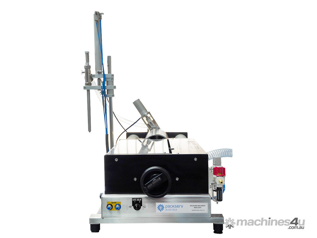 The Packserv PFM-5-BUF-NA is a single head semi-automatic bottom up liquid, cream and paste filling machine.