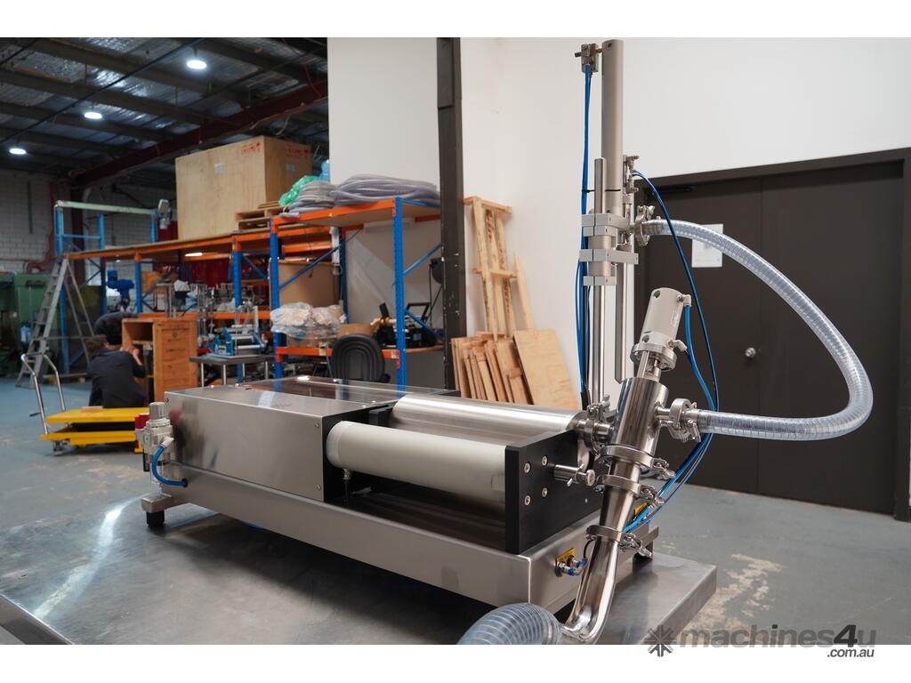 It has been designed for use as a semi-automatic bench top machine or to be quickly and easily upgraded into a fully-automatic filler to be mounted over the top of a conveyor. This machine fill 5 litres per a shot.