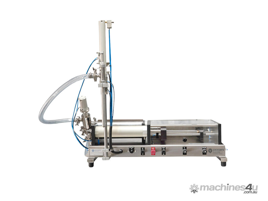 The Packserv PFM-5-BUF-NA is a single head semi-automatic bottom up liquid, cream and paste filling machine. It has been designed for use as a semi-automatic bench top machine or to be quickly and easily upgraded into a fully-automatic filler to be mounted over the top of a conveyor. This machine fill 5 litres per a shot.