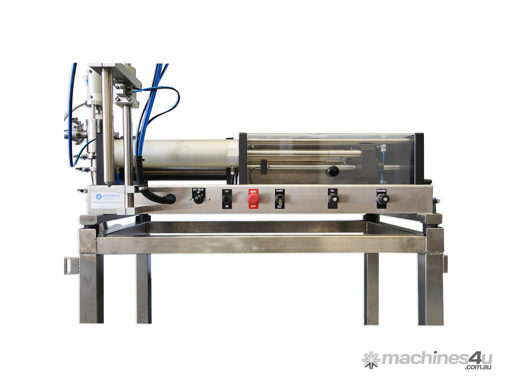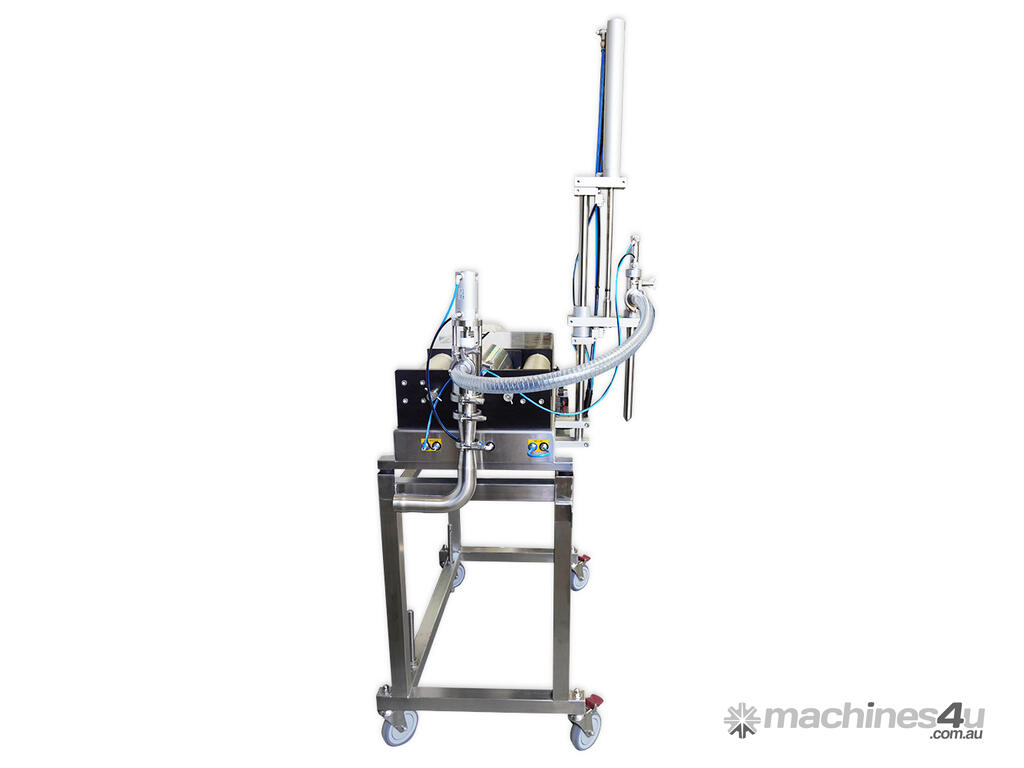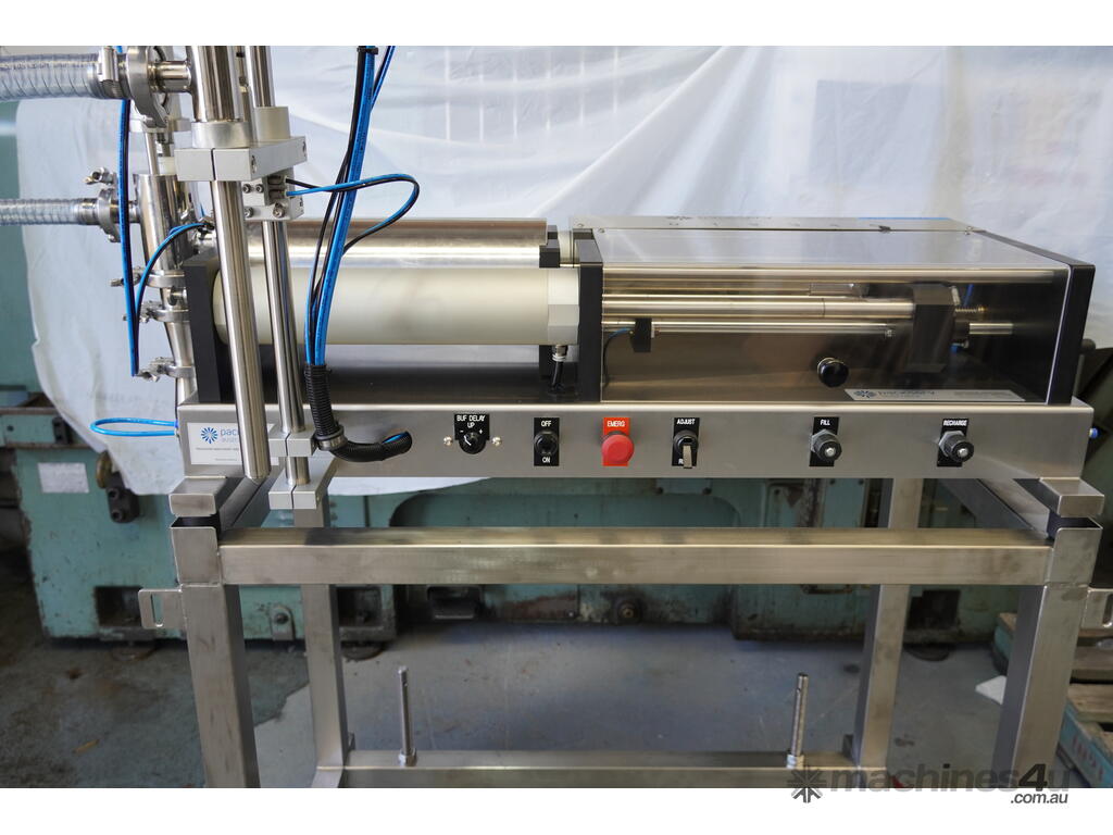 It has been designed for use as a heavy duty, all pneumatic semi-automatic inline bottom up filling machine which offers reliability and ease of use with tool-free cleaning and parts change-over.