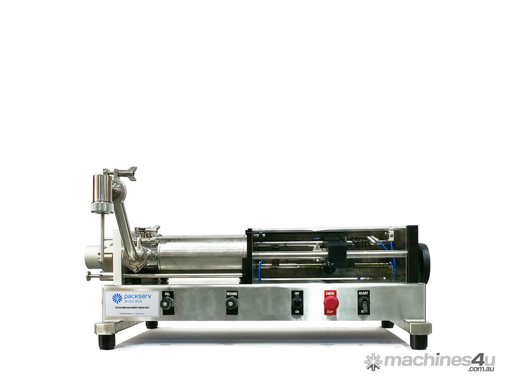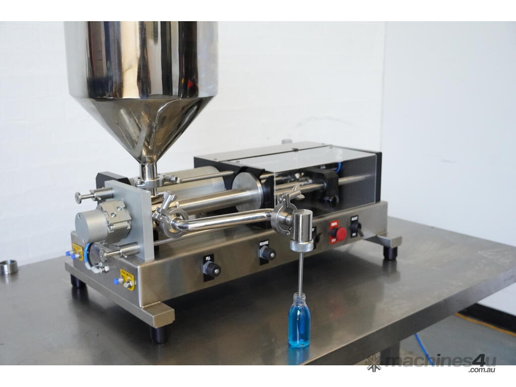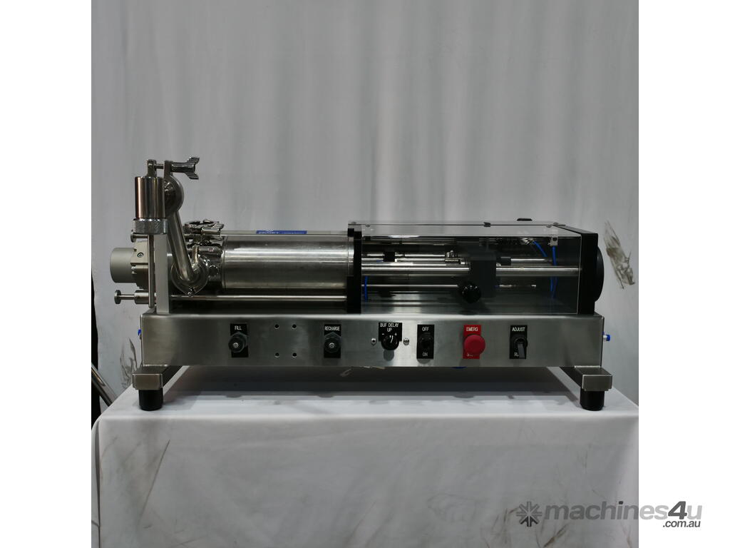 It has been designed for use as a heavy duty, all pneumatic semi-automatic bench top filling machine which offers reliability and ease of use and tool-free cleaning and parts change-over.