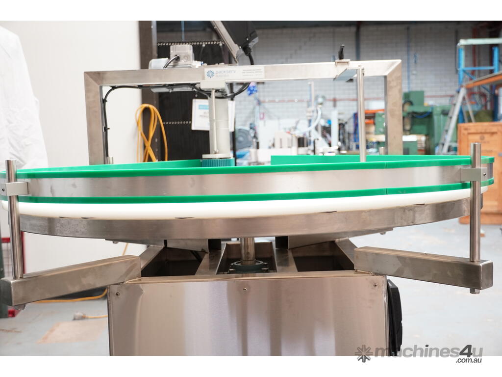 The Packserv PST-8 sorting/infeed table is designed to be the initial point on any production line. This table feeds containers in a single line onto conveyor system to allow the other production processes to take place.