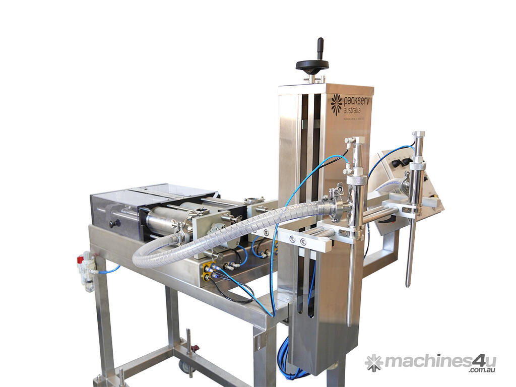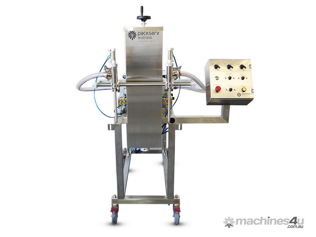 The Packserv PFM-3-2C Auto Twin Head Up Filler is a semi-automatic liquid, paste and cream filling machine that is both user friendly, versatile and features 2 separate filling nozzles.