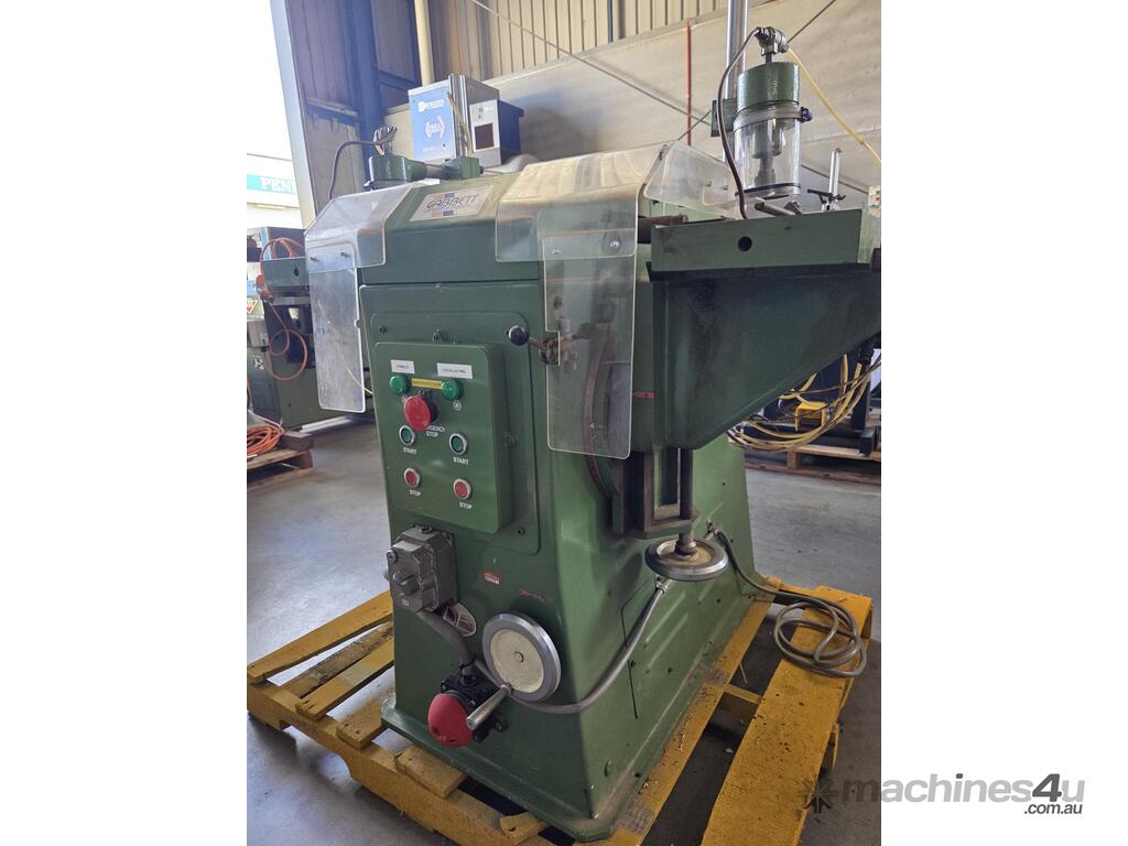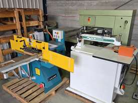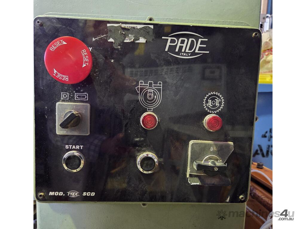 1. PADE SCD TWIN TABLE ROUND-END TENONER SEMI-AUTO MADE IN ITALY Heavy Duty, Full Cast Iron Construction, Same Specs as Current Series, Pneumatic Clamping / Cycle. Very Good Original Condition. Ready to Work.