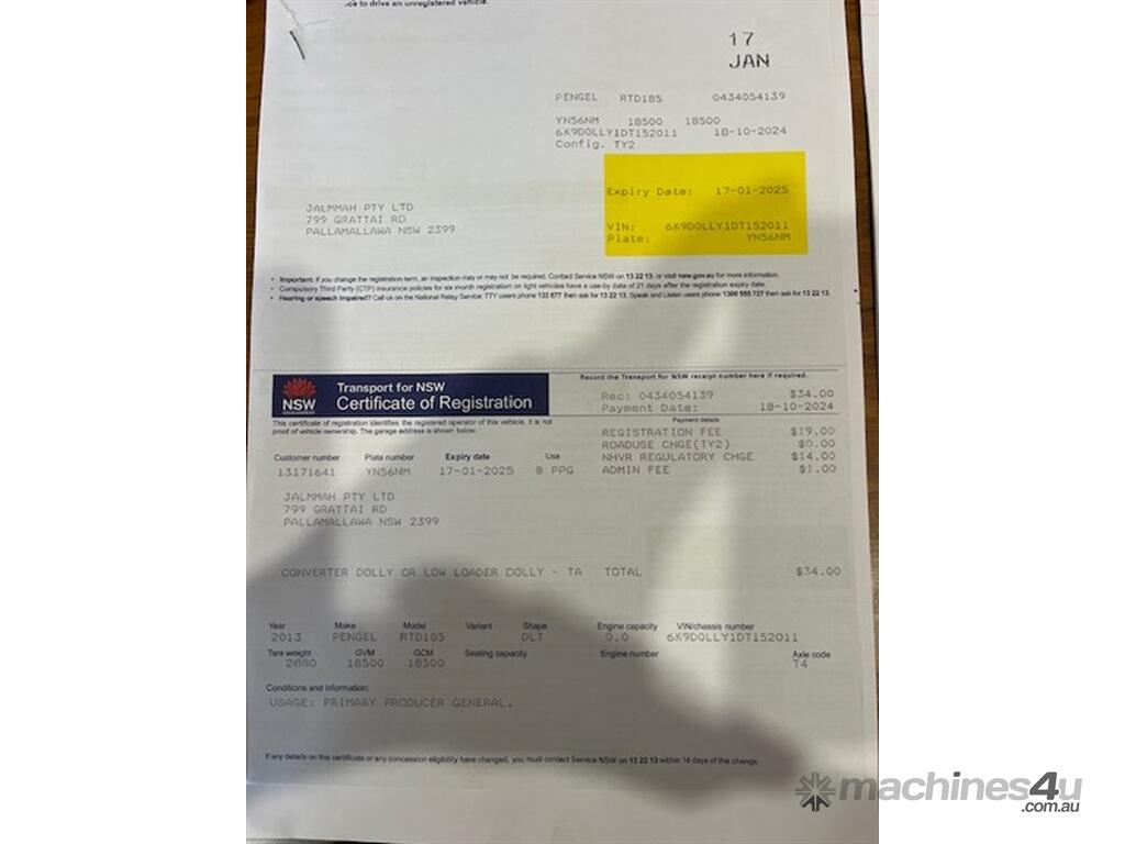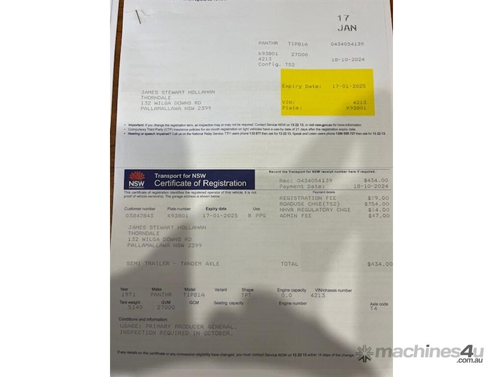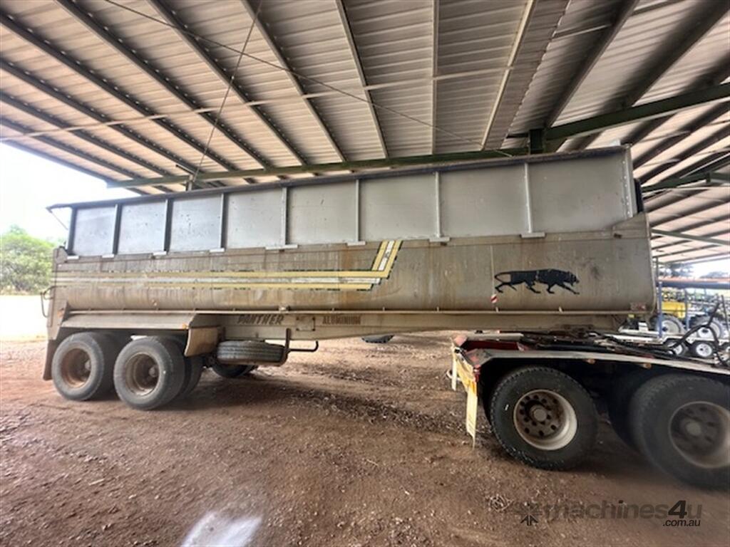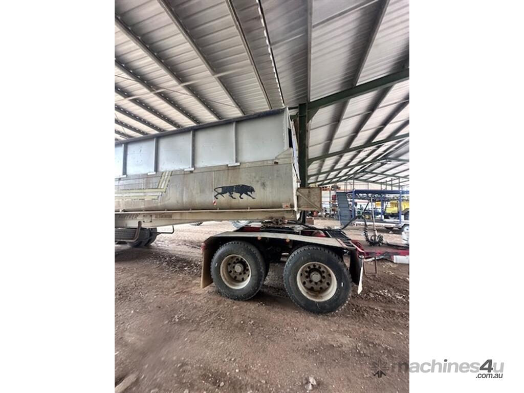 PANTHER SEMI TIPPER with PENGEL DOLLY, Panther tandem aluminium trailer, build 1971 model tip81a tare 5140 gvm 27000 , Pengel dolly model rtd185, build 2013, tare 2880 gvm 18500 , roll over tarp ,Trailer is bolted onto ballrace turntable , has been used as dog trailer in a road train, registered
