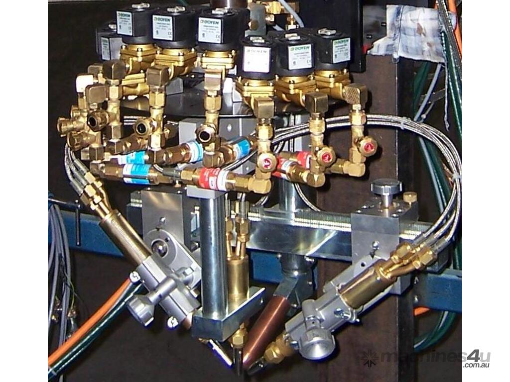 - Torches are fed with Gasses that are distributed through a rotating teflon-lined manifold. This system provides endless rotation without twisting any cables or hoses