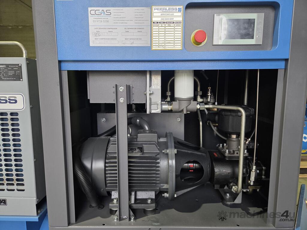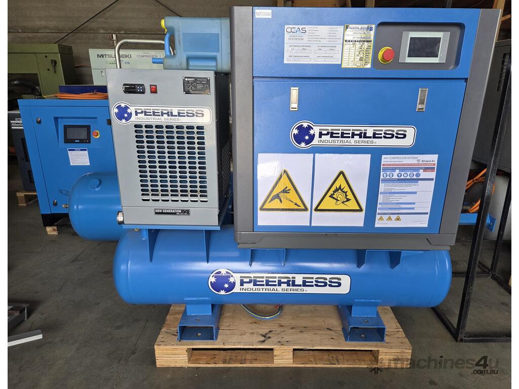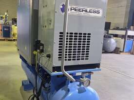 1). PEERLESS WBVZ 7.5kw 10hp 415v 10 BAR 35.4CFM 3-IN-1 VARIABLE SPEED FULLY FEATURED ROTARY SCREW COMPRESSOR Year 2022 INCLUDING BUILT-IN REFRIGERATED AIR DRYER/FILTERS MOUNTED ON 300 LITRE AIR RECEIVER TANK, GENUINE LOW 605 RUN HOURS/73 LOAD HOURS. ULTIMATE HEAVY DUTY TOP-SPEC MODEL. VIRTUALLY 'NEW'