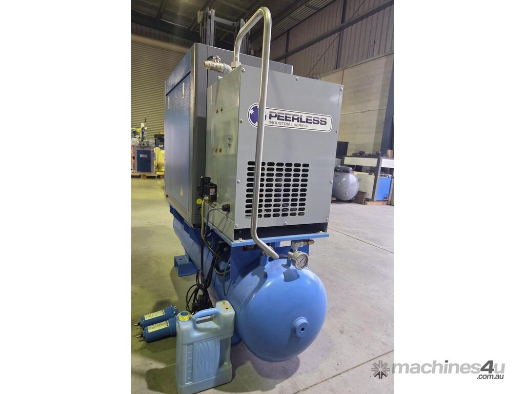 1). PEERLESS WBVZ 7.5kw 10hp 415v 10 BAR 35.4CFM 3-IN-1 VARIABLE SPEED FULLY FEATURED ROTARY SCREW COMPRESSOR Year 2022 INCLUDING BUILT-IN REFRIGERATED AIR DRYER/FILTERS MOUNTED ON 300 LITRE AIR RECEIVER TANK, GENUINE LOW 605 RUN HOURS/73 LOAD HOURS. ULTIMATE HEAVY DUTY TOP-SPEC MODEL. VIRTUALLY 'NEW'