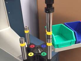 - Laser pointer, stroke counter, and lockable cabinet for tools and accessories storage.