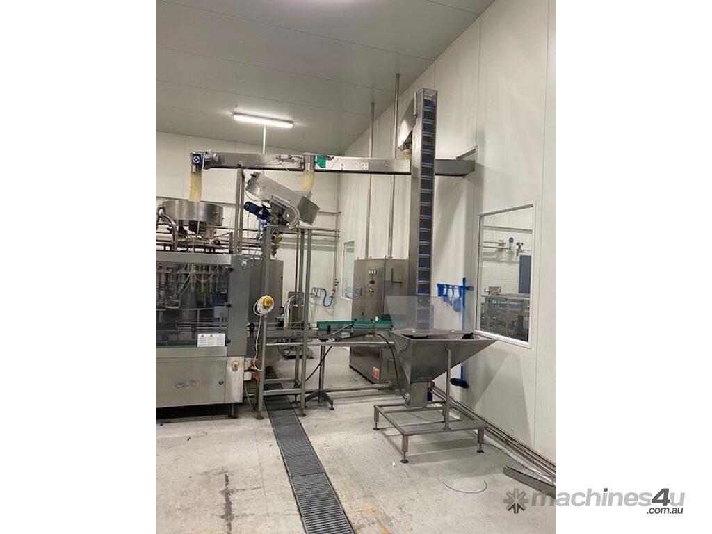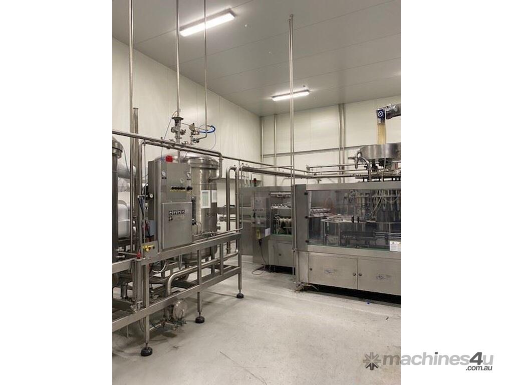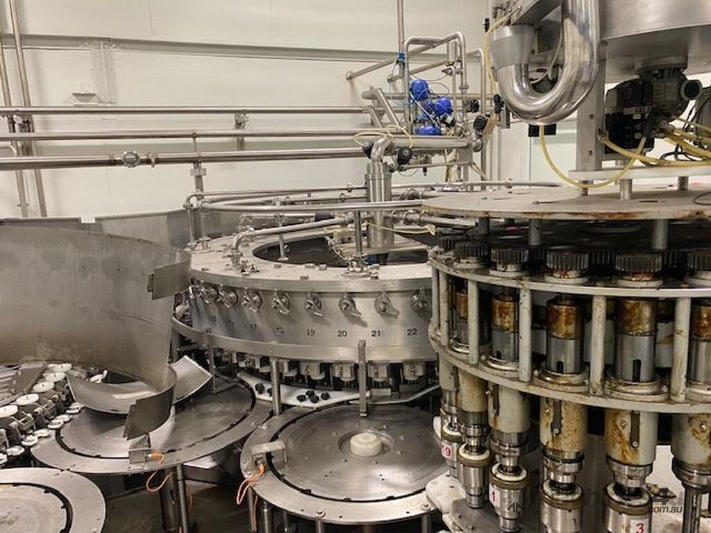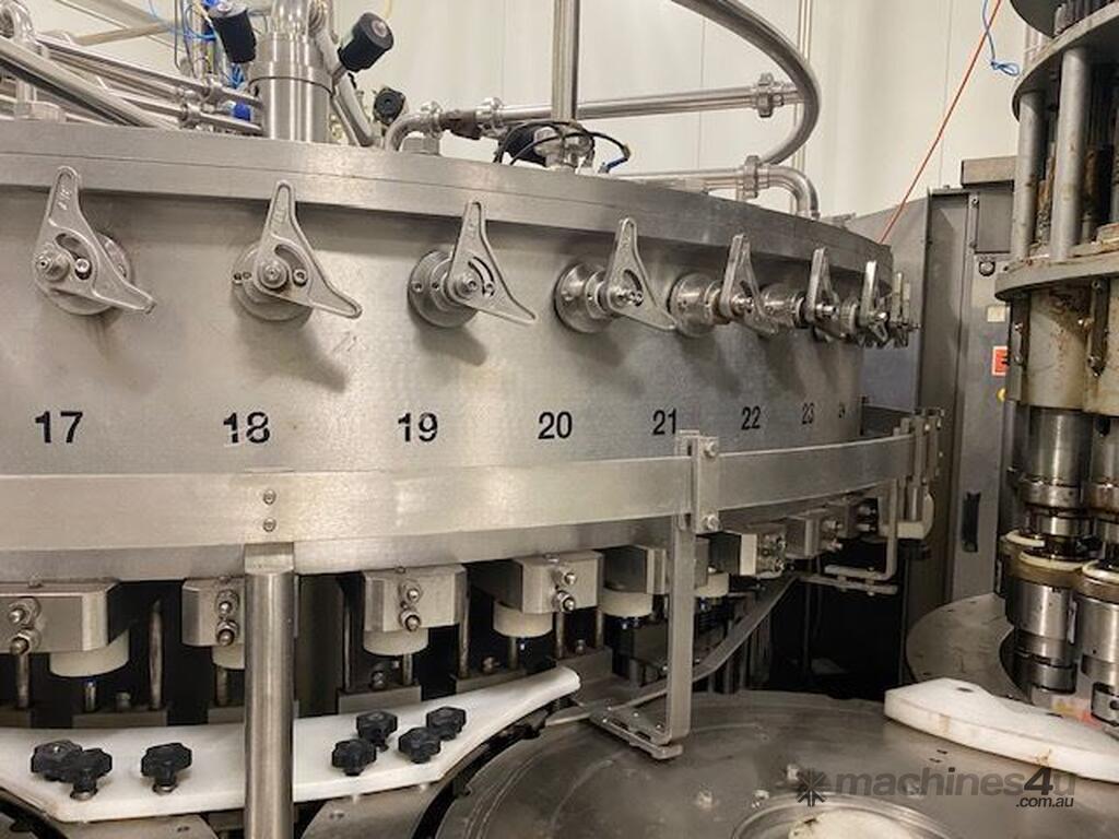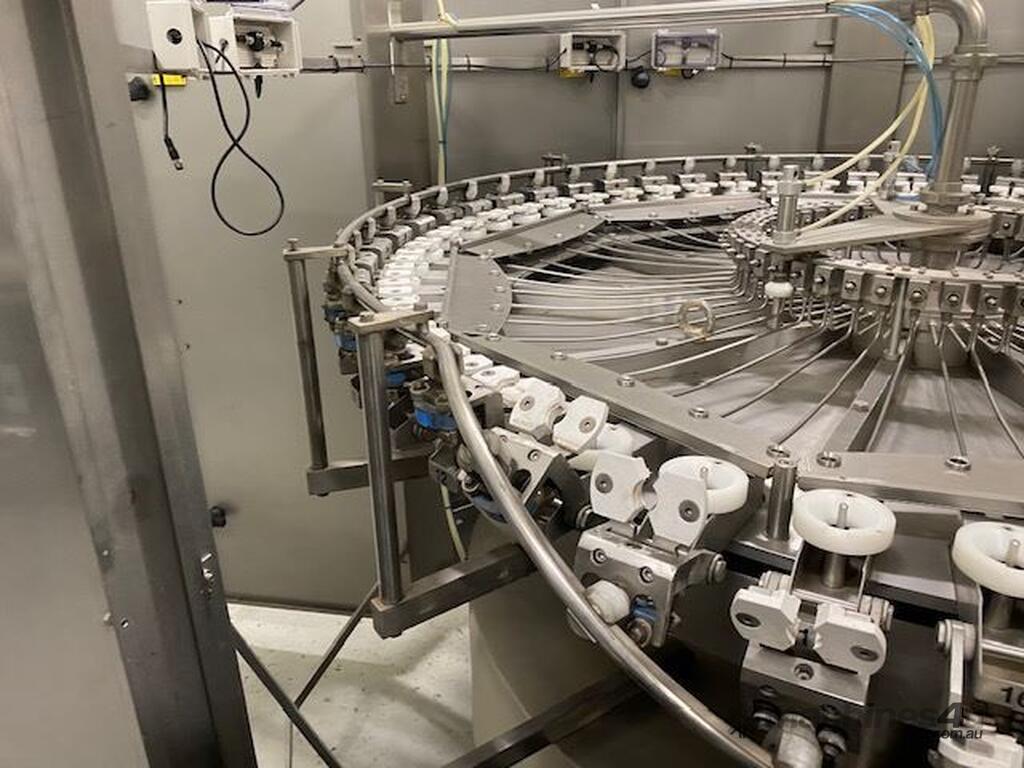Pet Unibloc filler last used for water Suitable for water, fruit juices and isotonic drinks 50 head rinser 50 head filler 20 head capper 18kw power Max bottle dia 110mm 100-450 bottles per minute depending on bottle size. The gravity and vacuum filling system for non carbonated liquids are designed and manufactured using highly innovative technologies suitable to achieve the maximum precision in results, high production outputs, easy sanification, simplicity in operation and maintenance and reliability. The filling systems, according to the type of product and container to be handled, are manufactured with gravity system, light vacuum, direct vacuum, light pressure, electronic control system or the specific version for wine filling. More info about the filler can be found here.