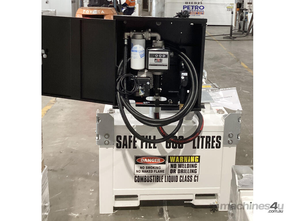 The PETRO Industrial Self-Bunded, 600L Safe Fill, Diesel Storage CUBE Tank with the PIUSI ST BOX Pump Kit.