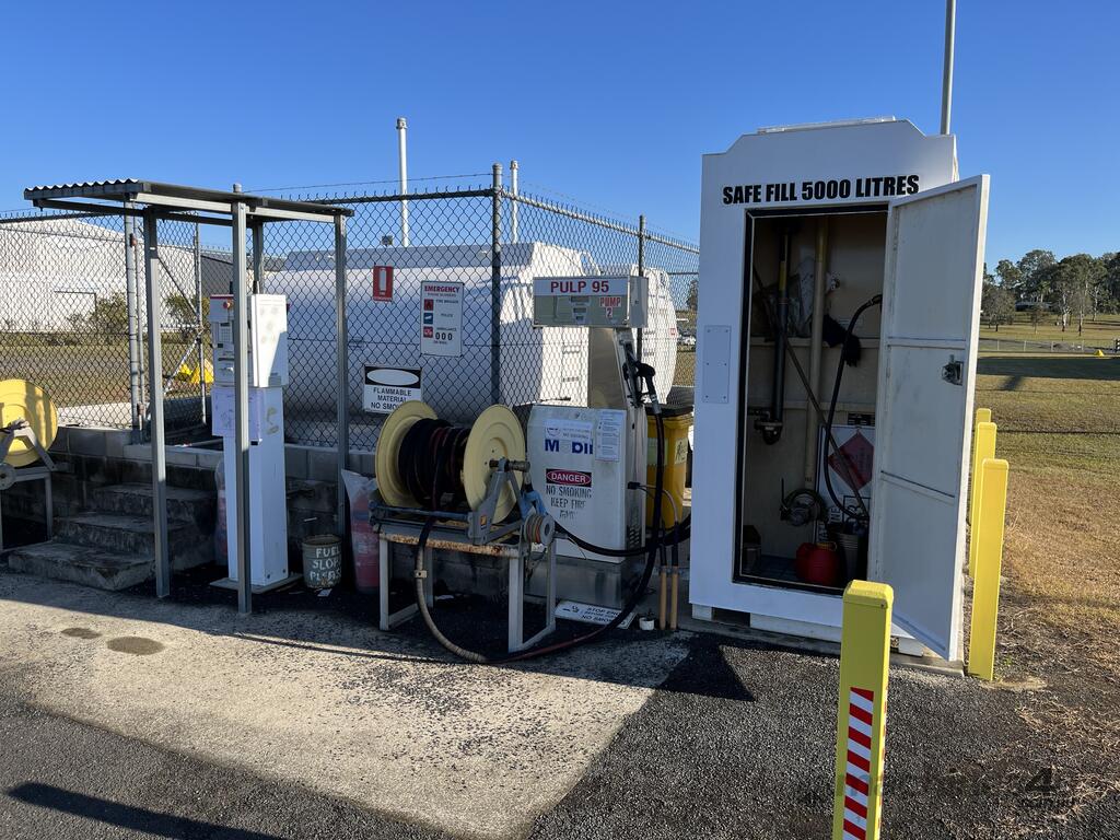 Key features include a lockable full-height pump bay housing for secure storage of dispensing equipment, ensuring compliance with AS1940, AS1692, and AS1657 standards. The tank has a galvanized grated bunded area with a drain for spill containment. The fill point is equipped with a DN50 (2") flanged 150# fill point, full bore ball valve, non-return valve, male camlock fitting, dust cap, mechanical overfill protection valve, and a 12V overfill alarm. Additionally, there's a DN50 (2") flanged 150# suction point with an anti-syphon and foot valve assembly, along with a spare DN25 (1") suction outlet.