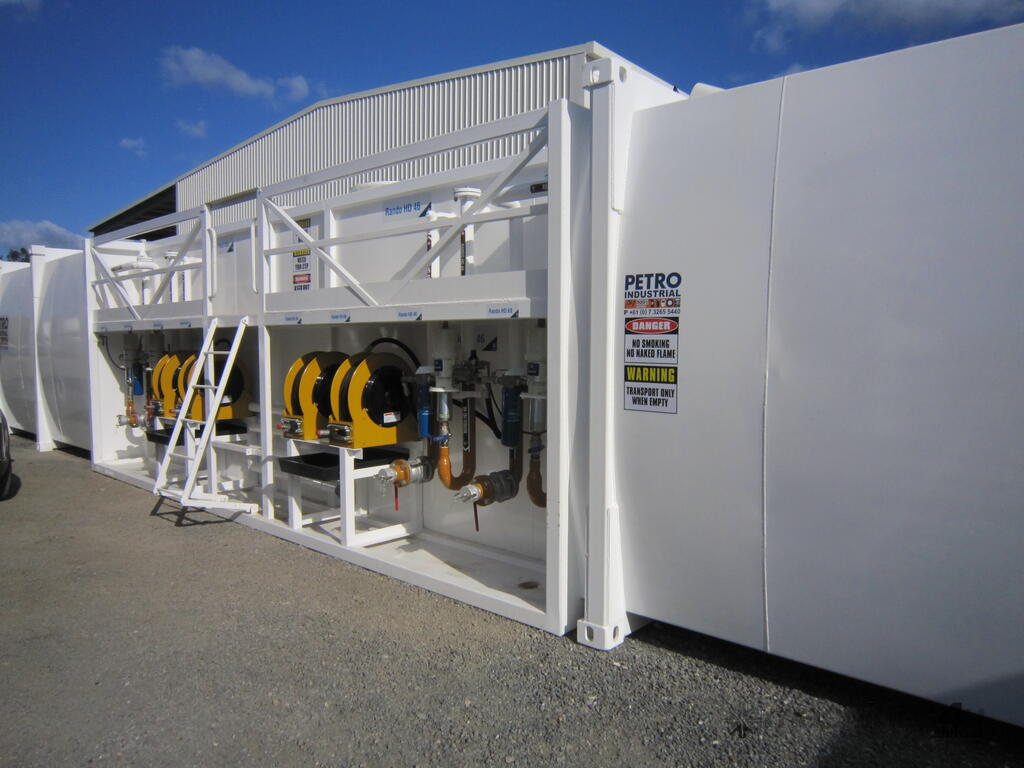 Saving on precious footprint, why not combine your multiple grades of bulk lubricant and fuel storage into the one footprint? Available in any foot print configuration including our 10ft, 20ft, 40ft, 45ft and 48ft standard container, and indeed any other derivative of these.