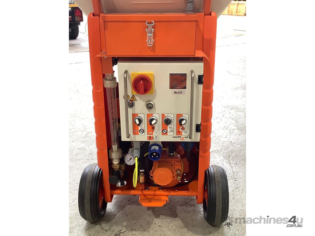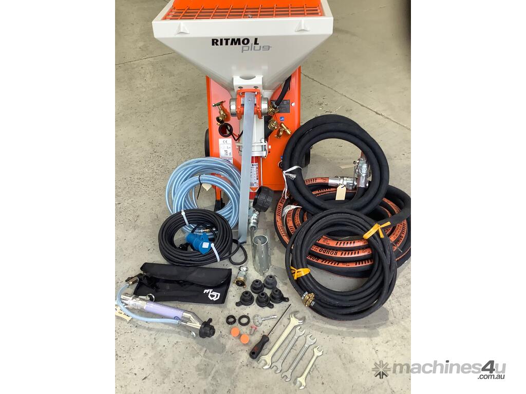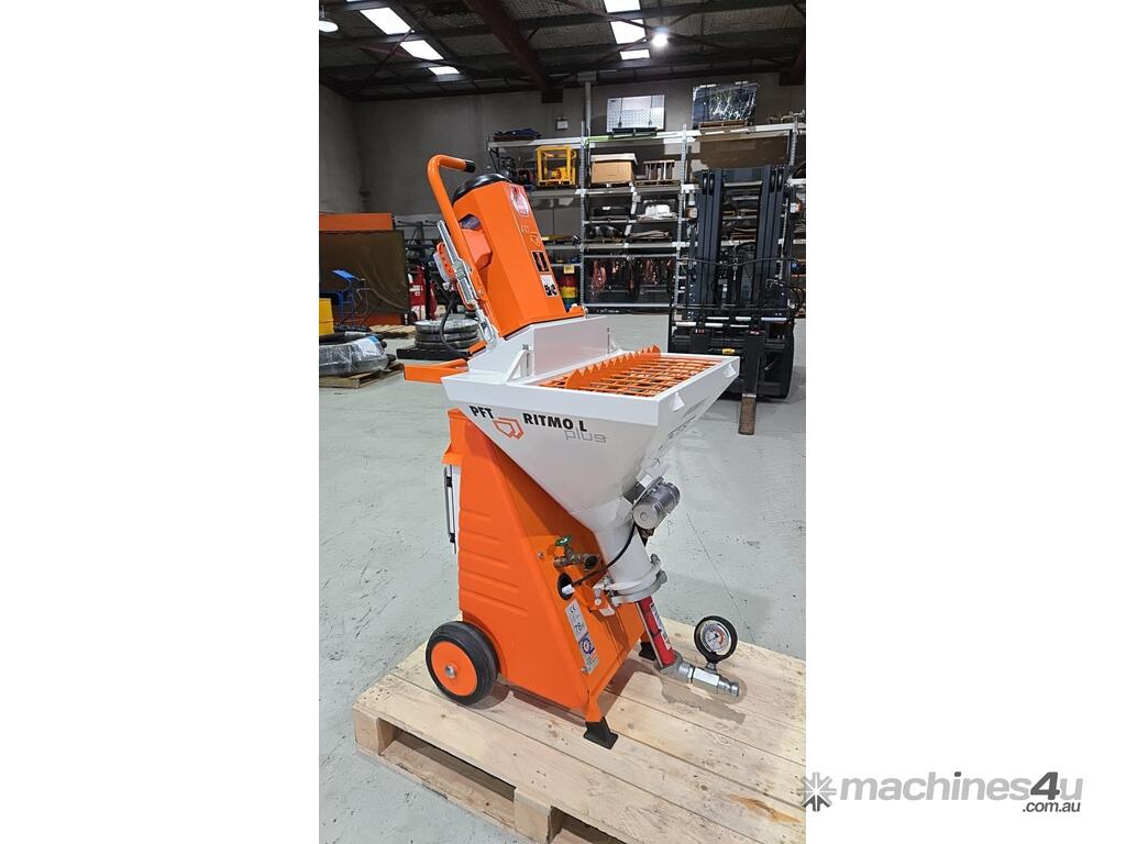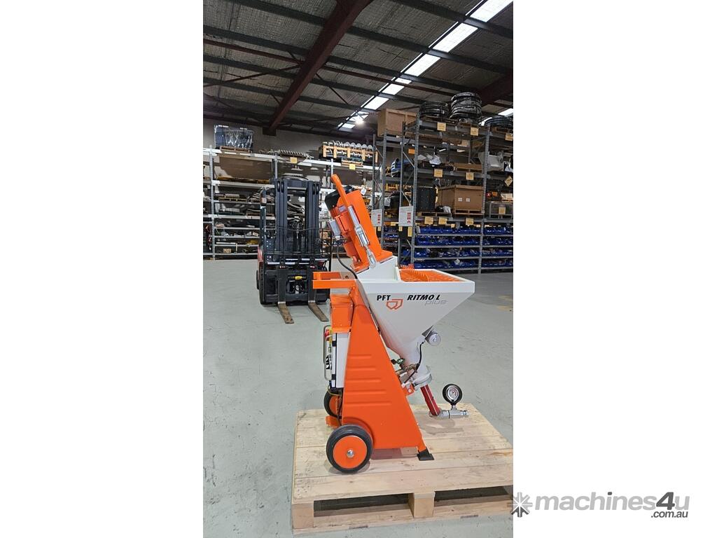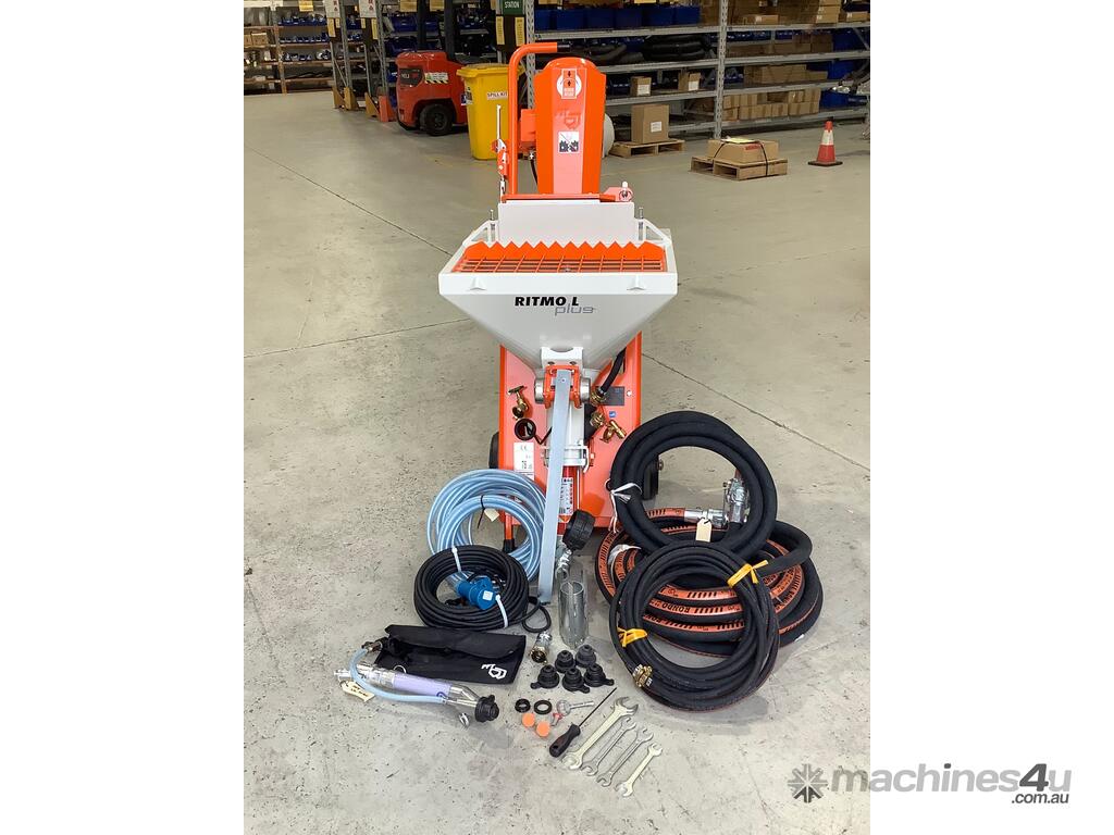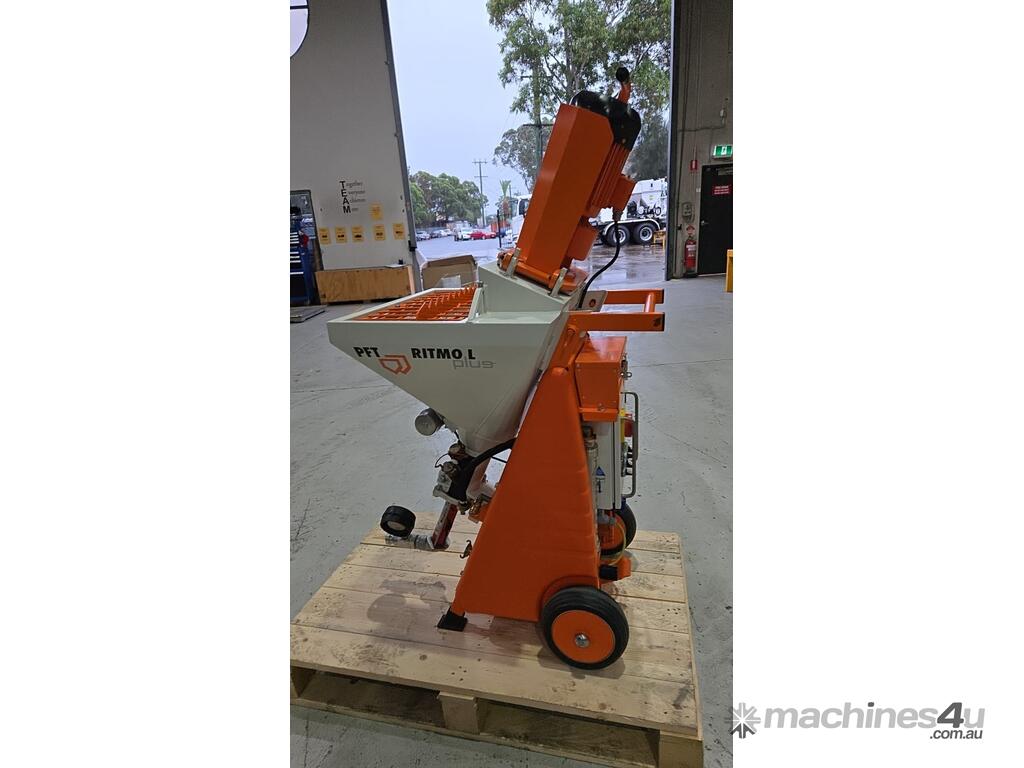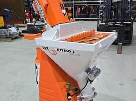 Brand new German made, PFT Ritmo L Plus. Mixing pump - also known as plastering machines or mortar pumps - continuously and fully automatically process all machine-compatible ready-mix dry mortars based on gypsum, lime and cement with water. PFT offers several model ranges, including the RITMO family. The machine can be loaded with buckets or bagged material. The strengths include particularly easy handling, an optimised material flow and a very low weight, which facilitates the transport of the compact machine. The pump capacity of the RITMO L plus FC-230V is infinitely variable.