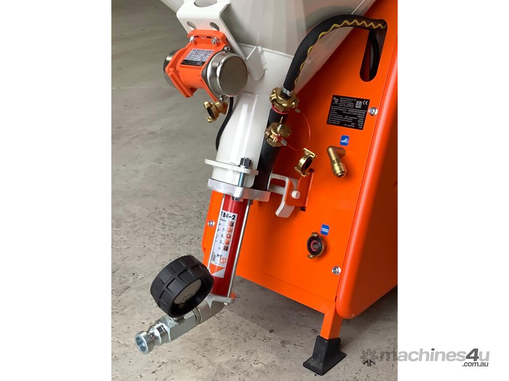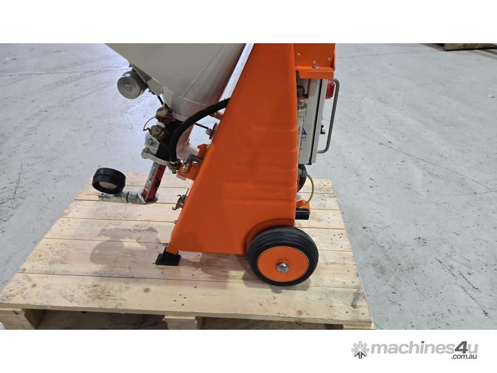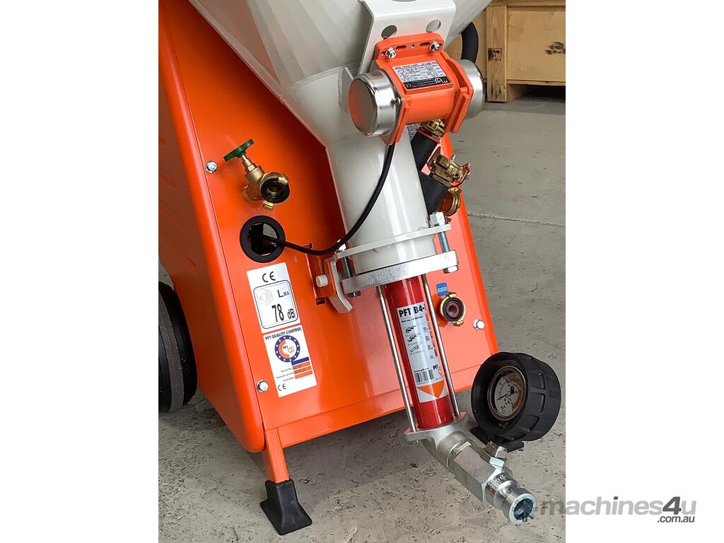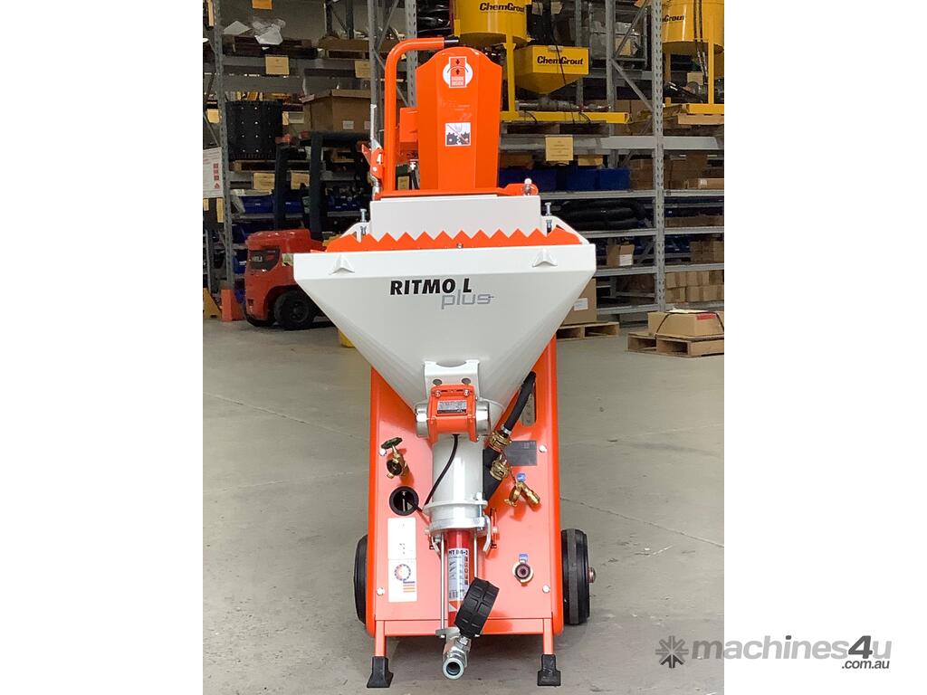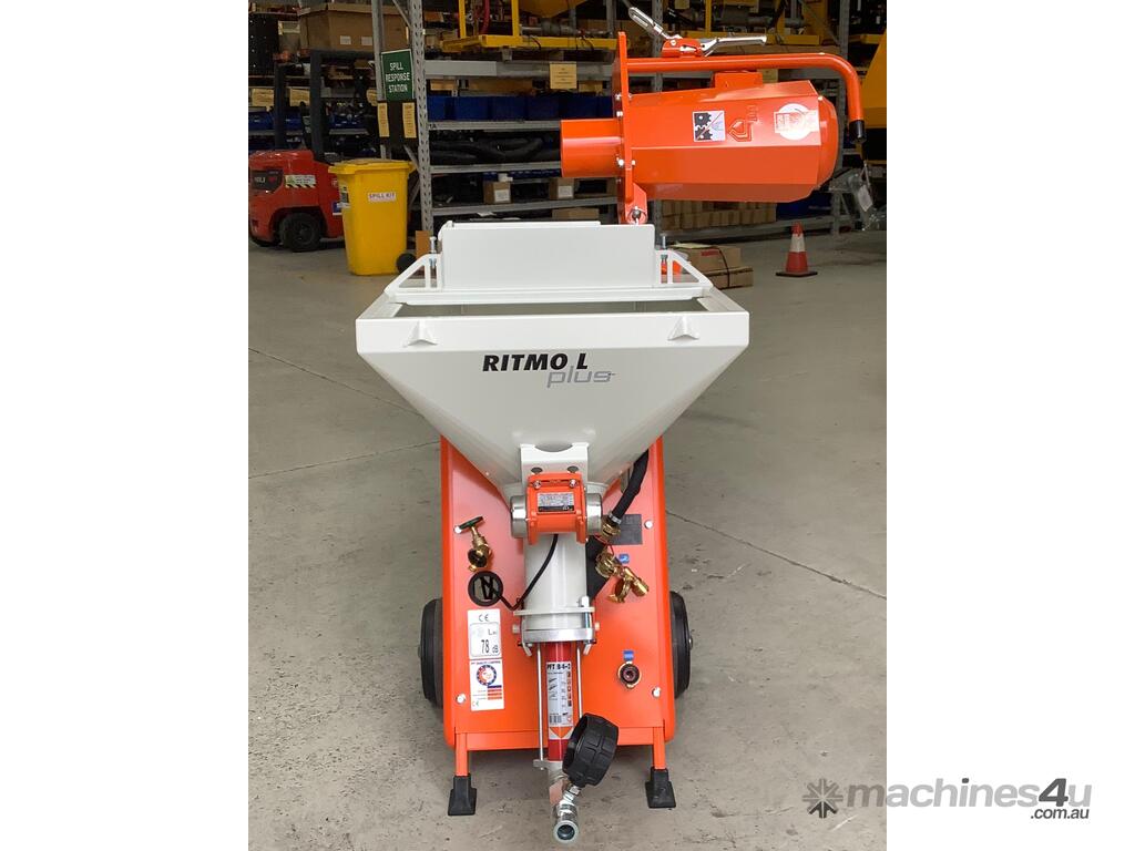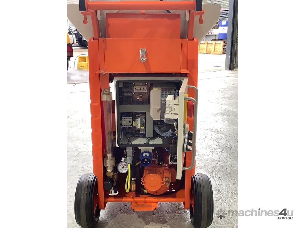 Brand new German made, PFT Ritmo L Plus. Mixing pump - also known as plastering machines or mortar pumps - continuously and fully automatically process all machine-compatible ready-mix dry mortars based on gypsum, lime and cement with water. PFT offers several model ranges, including the RITMO family. The machine can be loaded with buckets or bagged material. The strengths include particularly easy handling, an optimised material flow and a very low weight, which facilitates the transport of the compact machine. The pump capacity of the RITMO L plus FC-230V is infinitely variable.