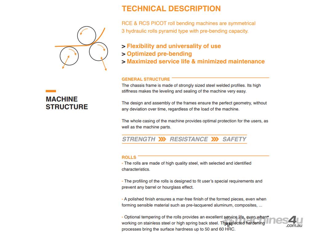 Picot RCS machines are double pitch plate bending machines with wide openings between rollers, delivering perfect pre-bent edges and easy conical rolling.