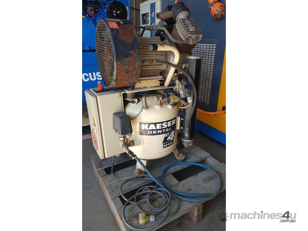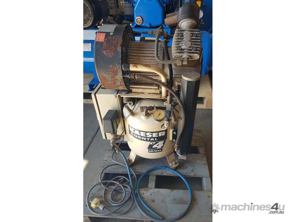 3). KAESER KT-4 DENTAL OIL-FREE 1.1kw 1.5hp 240v AIR COMPRESSOR Year 2000, BUILT-IN SECCOMAT DESSICANT AIR DRYER, AFTER COOLER, PERMANENT POWER SYSTEM (PPS) PROVIDING INTERNAL COOLING AND LONGER PUMP LIFE, DIRECT DRIVE MOTOR, AIR TANK, PORTABLE - 2 x CARRY HANDLES, MADE IN GERMANY, COMPACT, GOOD CONDITION