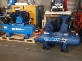 2). FOCUS 5.5kw 7.5hp 415v INDUSTRIAL RECIPROCATING AIR COMPRESSOR Year 2023 BRAND NEW, CAST IRON PUMP, 160 LITRE AIR TANK, BOLTED TO TRANSPORT PALLET READY TO GO. SPECIAL OFFER SAVE $ 1,950!!