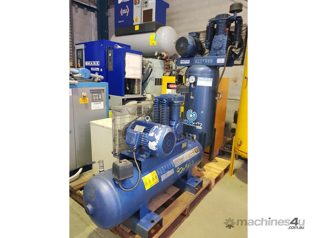 5). PILOT K100 15kw 20hp 415v INDUSTRIAL RECIPROCATING AIR COMPRESSOR MADE IN AUSTRALIA, SLOW-REVVING HEAVY DUTY ITALIAN CAST IRON PUMP, 500 LITRE AIR RECEIVER TANK. STAR-DELTA STARTER SWITCH INCLUDED FOR POWER SAVING START-UP. VERY GOOD ORIGINAL CONDITION. REPLACEMENT COST $ 12,000!! VIEW ATTACHED VIDEO!