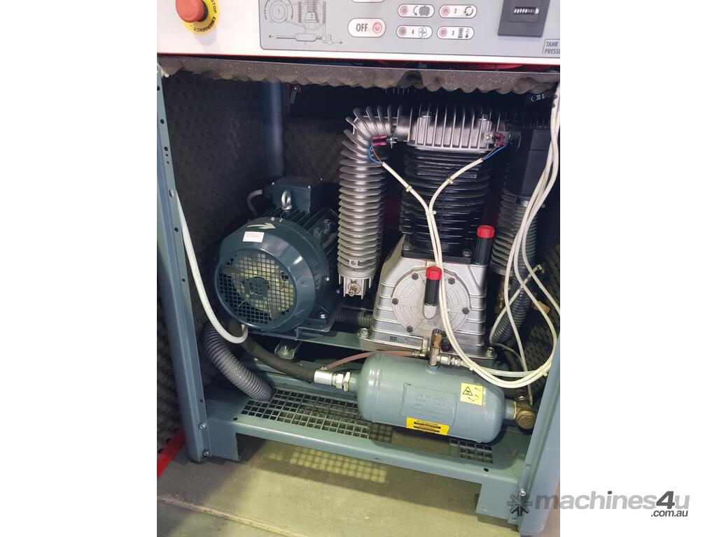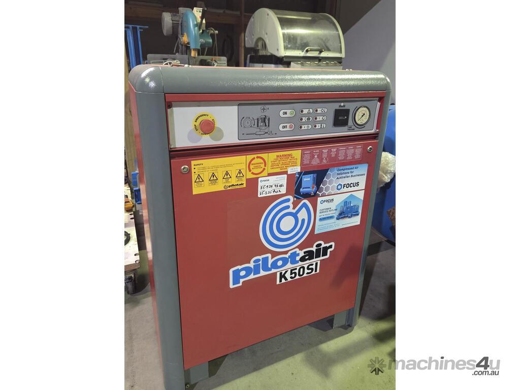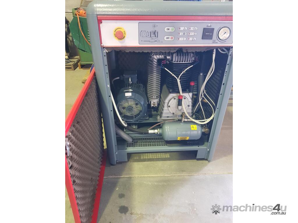 1). PILOTAIR K50SI SILENT 7.5kw 10hp 415v INDUSTRIAL RECIPROCATING AIR COMPRESSOR MADE IN AUSTRALIA Year 2016, HEAVY DUTY ITALIAN CAST IRON PUMP, ONLY 98 HOURS!! TWIN COOLING FANS, SUPER SILENCED DESIGN INCL ACOUSTICALLY SILENCED CABINET AND THERMOSTATIC CONTROL, VIRTUALLY 'NEW' CONDITION, 1 OWNER.