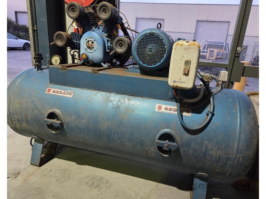 6). SWAN/ONDAIR 15kw 20hp 415v INDUSTRIAL RECIPROCATING AIR COMPRESSOR, AUSTRALIAN MADE ICON Year 1989 MOUNTED ON MASSIVE 950 LITRE MARTINSON AIR RECEIVER TANK (2.25m x 750mm Diameter), GOOD CONDITION