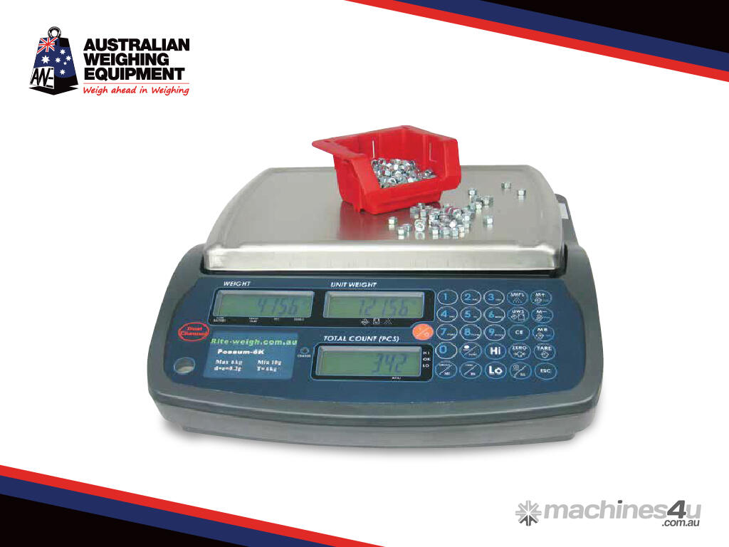 The Possum Counting Scale has an extensive range of weighing and counting functions. The Possum series counting scale will improve reliability by eliminating errors and unnecessary repetition during large volume counting jobs. An optional second scale platform may be added to allow fast accurate counting and weighing of large capacity products.