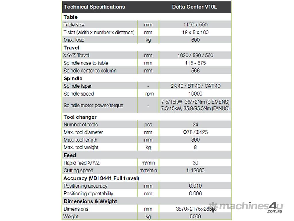 The Delta Center V10L, featuring the Fanuc Oi MF Plus Controlling System, is a precision-engineered marvel. Its cast iron construction undergoes stress relief tempering for structural stability and resistance to deformation. Pre-tensioning on all axes minimizes thermal distortion, while C3 class ballscrews ensure unmatched accuracy and durability, making it a top choice for precision machining.