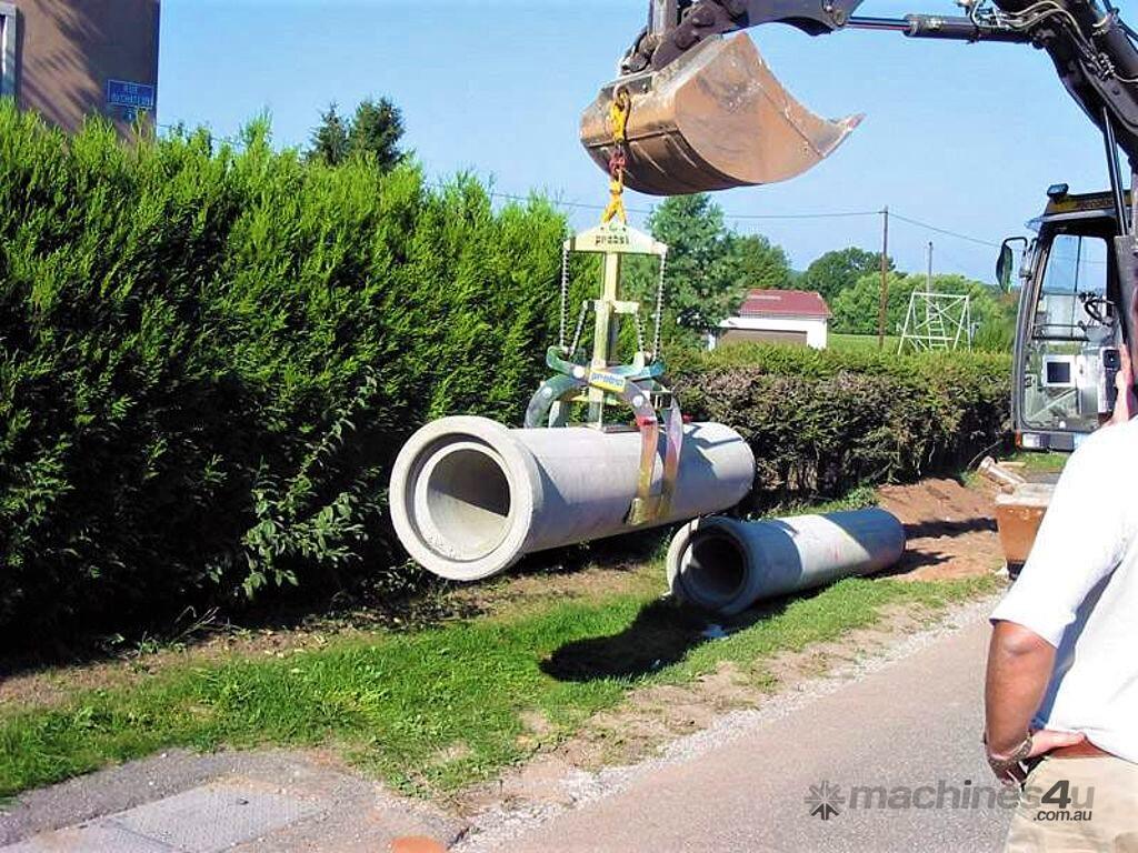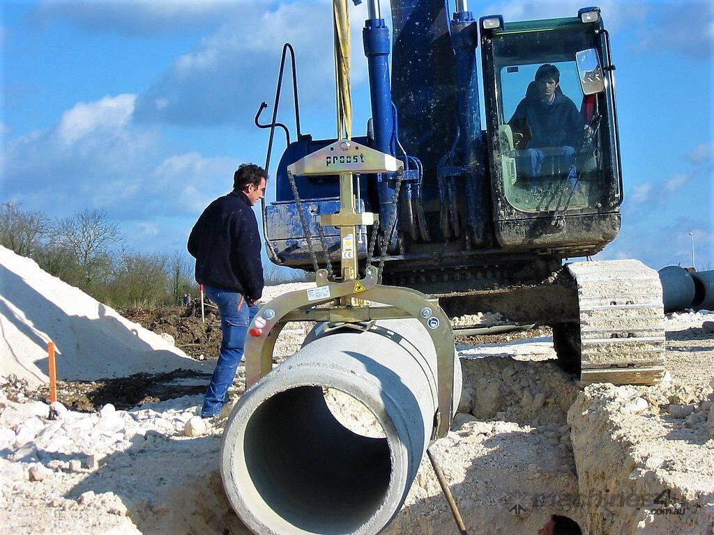 Probst Round Grab RG-20/80 for pipe laying is designed for lifting, moving and laying pipes on civil construction or plumbing sites. The ultra slim design of the grab means it can be used to lay pipes in very narrow trenches.