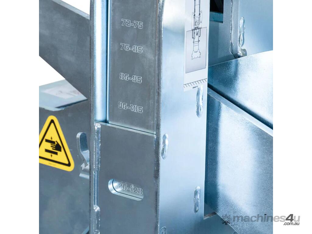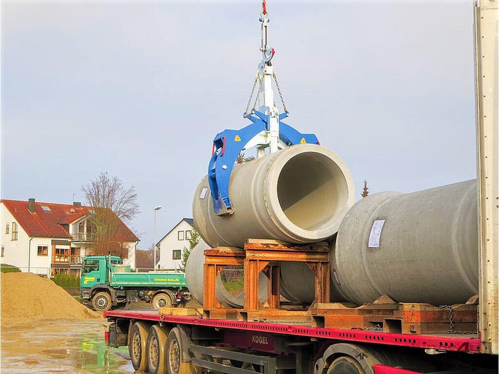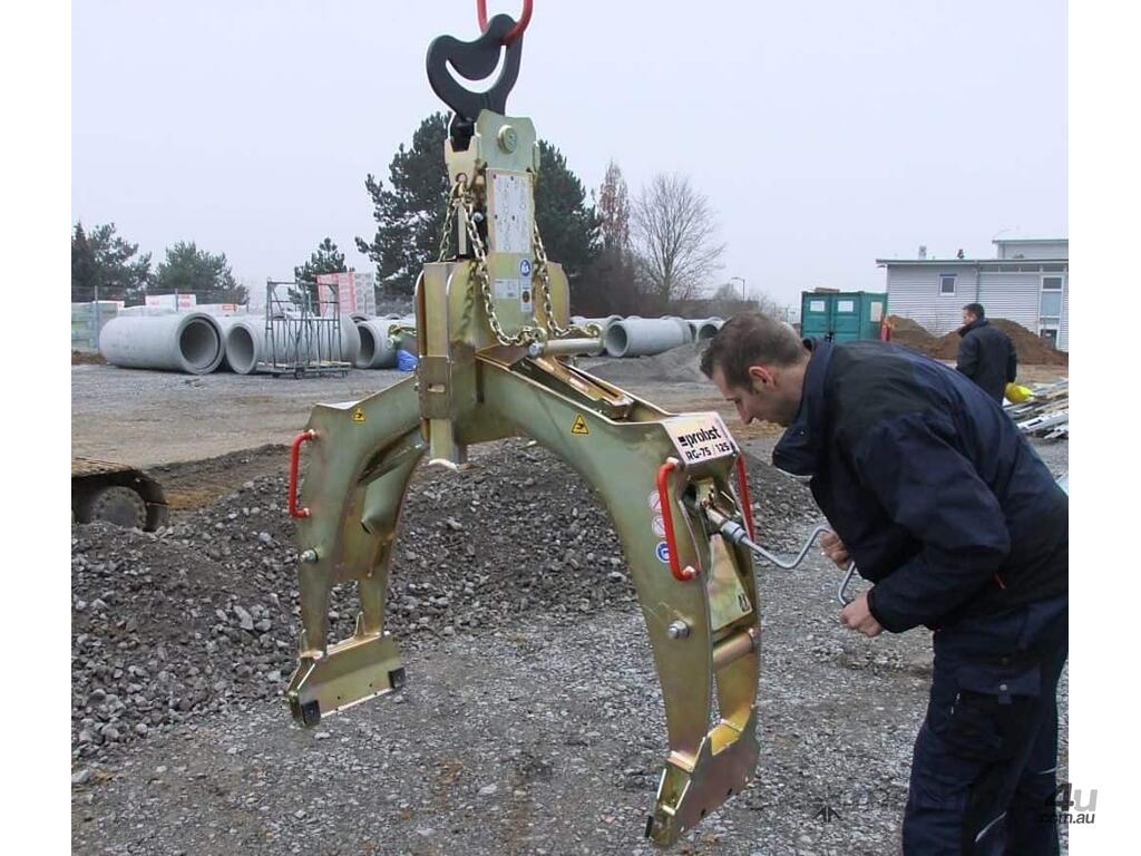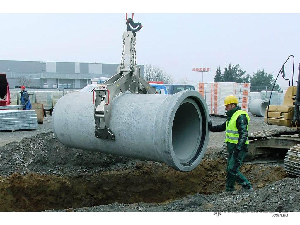 Design to lift, move and place large concrete pipes with external diameters from 920 mm to 1,530 mm. Mechanical pipe grab has a safety latch to ensure the clamping force is in place at all times, even if operated incorrectly.