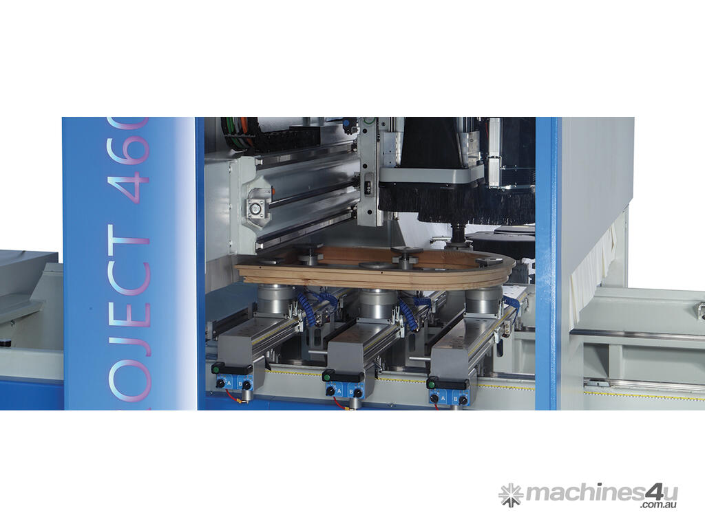 Large working areas in a reduced layout: Project 265, CNC for panels and solid wood, particularly suitable for the processing of furniture, doors and windows, can machine large pieces up to about 1800 mm.