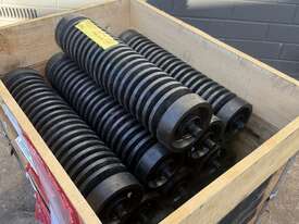 ???? Heavy-duty rollers used on mining / quarry conveyor belts to absorb impact where material is loaded.