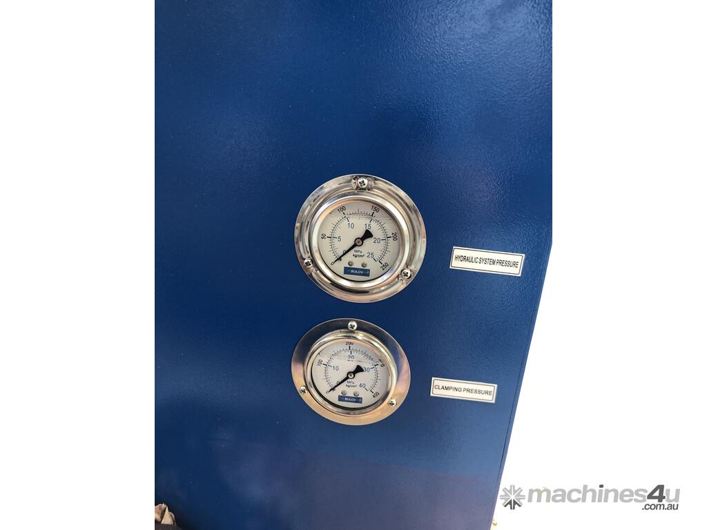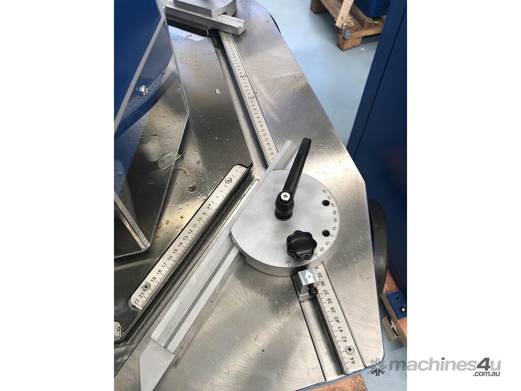 Inbuilt rules and hold down clamps are standard with the machine.