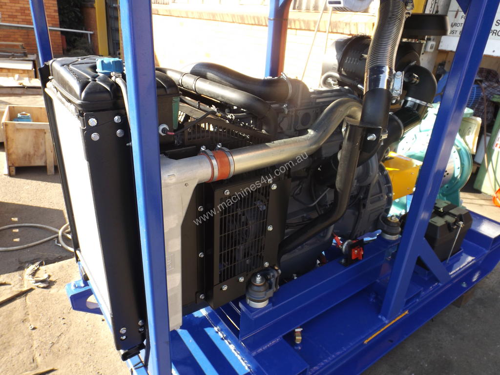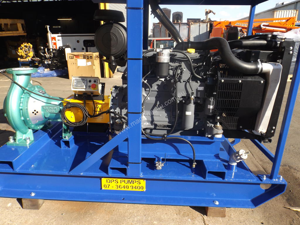 ISO Series 150x125-315 pump direct coupled to BF4M1013EC 4 cylinder turbo liquid cooled Deutz diesel engine. unit fitted with Kensho K21 shutdown panel, battery and leads, tailshaft and adaptors and mounted on heavy duty skid base frame with in-built 300 litre fuel tank with centre lift and guarding. Optional roof an battery isolation also fitted to unit.
