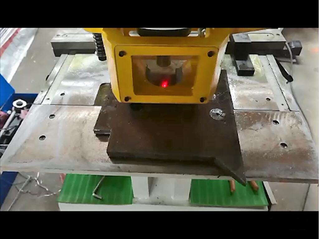 The punching head is equipped with a laser light which emits a red laser onto the plate so you know exactly where the punch will penetrate the plate so you dont need to inch the punch down enabling quicker punching times.