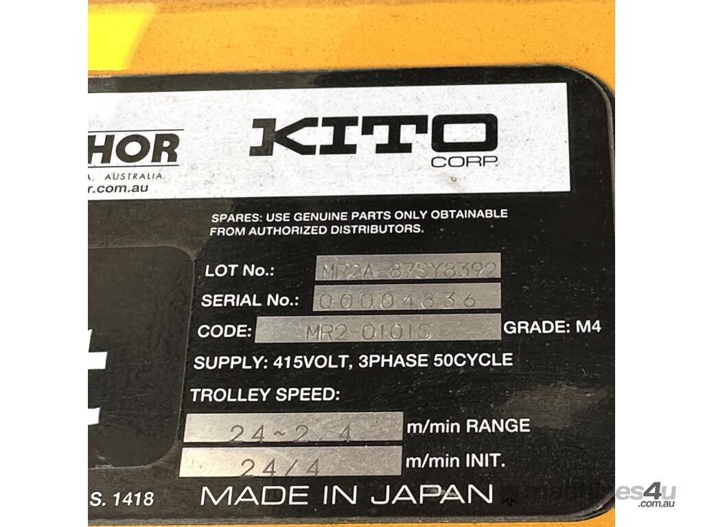 Kito 1t 1000kg Motorised Chain Hoist Winch with pendant controller