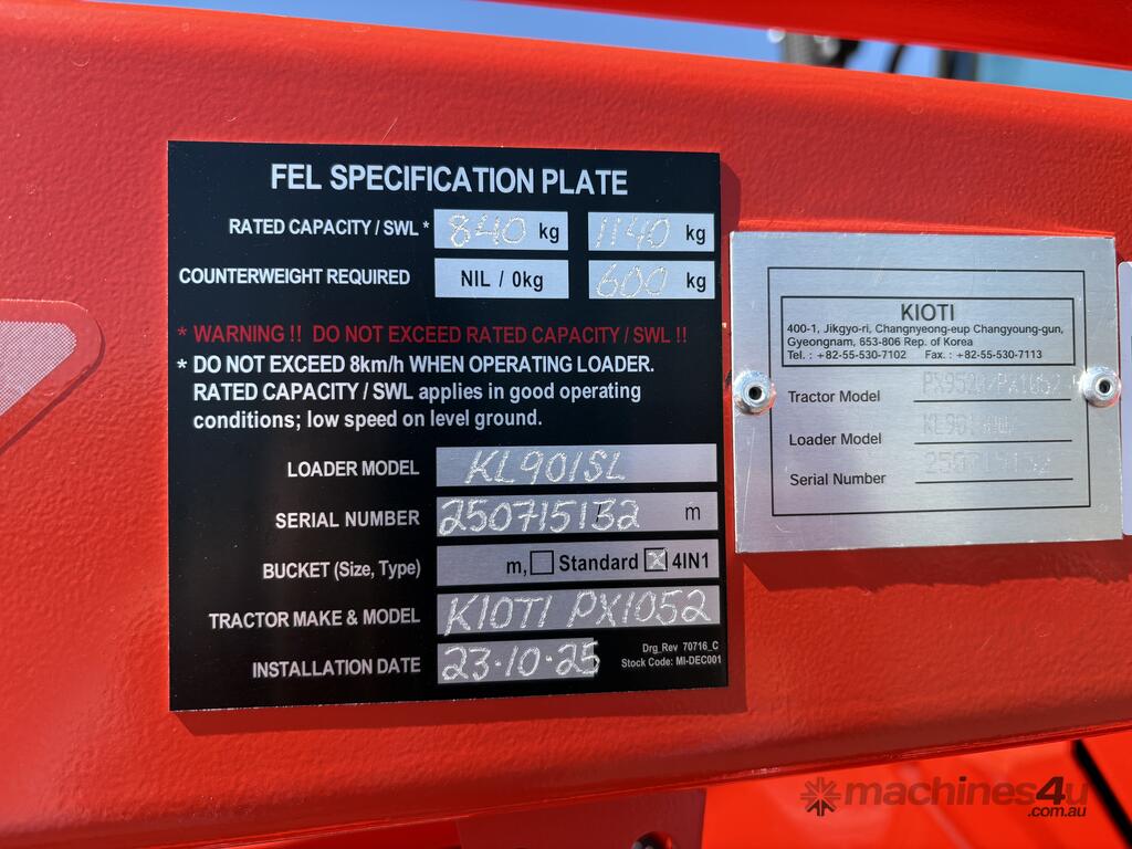 2025 KIOTI PX1052C CAB TRACTOR WITH LOADER & BUCKET – AVAILABLE NOW For sale is a brand-new 2025 Kioti PX1052C Cab Tractor, equipped with a front-end loader and bucket, offering exceptional power, comfort, and versatility for a wide range of agricultural and commercial applications. Key Features: 105HP diesel engine delivering strong, reliable performance Factory A/C Cab with excellent visibility, ergonomic controls, and a comfortable operating environment Front-End Loader with Bucket included and ready for work Heavy-duty build ideal for farming, property maintenance, and earthmoving tasks 4WD capability for improved traction and control Modern operator features, high-capacity hydraulics, and smooth transmission options This tractor is built to handle tough conditions while providing premium comfort and efficiency. Perfect for farms, contractors, and large property owners looking for a dependable, high-performance machine. Enquire today for pricing, availability, or to arrange an inspection.